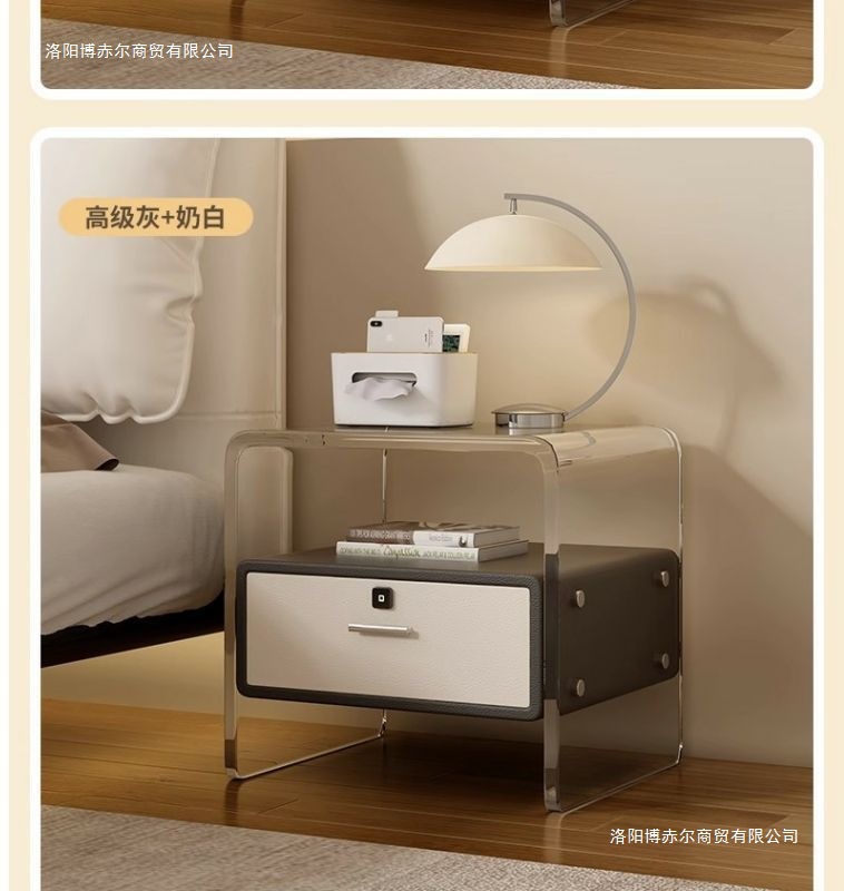 新しいハイエンドアクリル吊り下げベッドサイドテーブルミニマリストクリームスタイルライト高級ベッドサイドテーブルホームレンタルハウス小型キャビネット