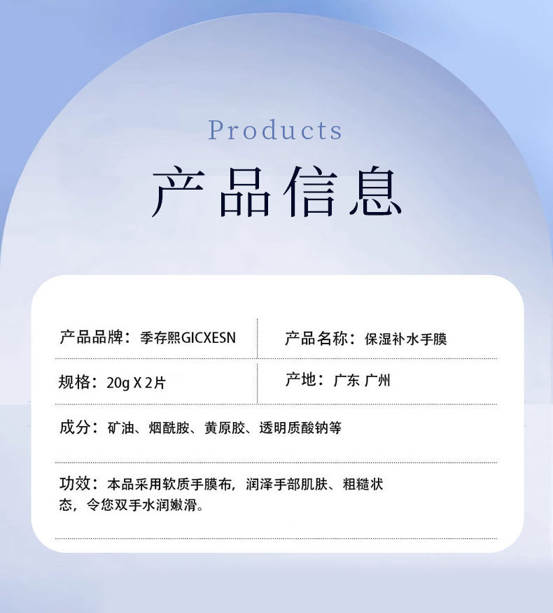 製品仕様 Ji Cunxi ブルーハンドマスク 20g*2枚/袋