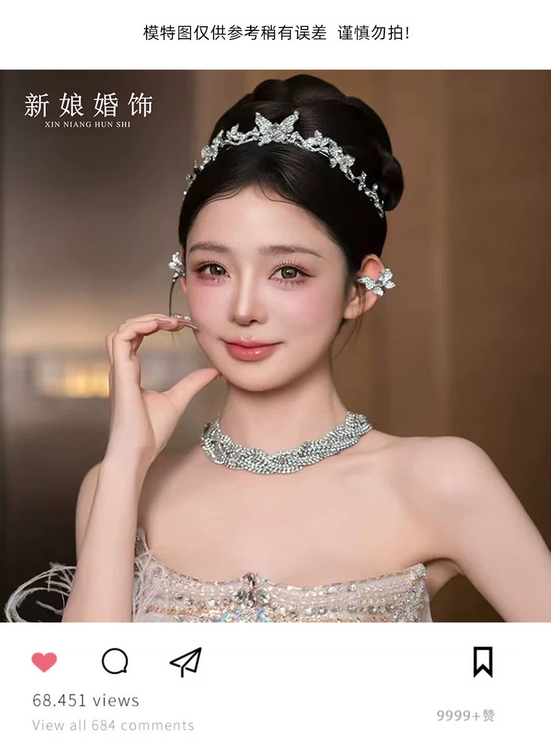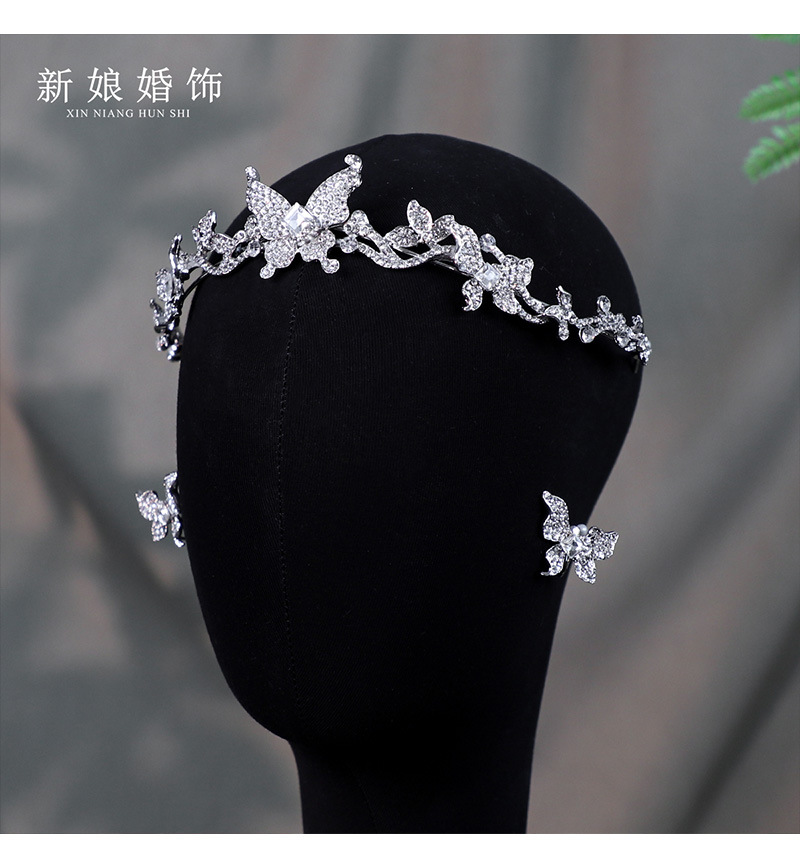 新款韩系新娘头饰星河碎钻甜美蝴蝶发夹贴面套装结婚婚纱礼服饰品