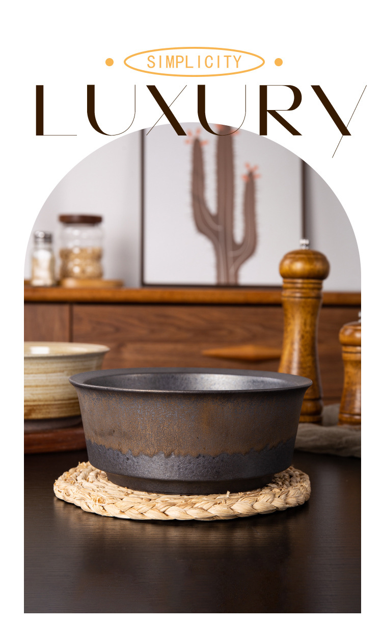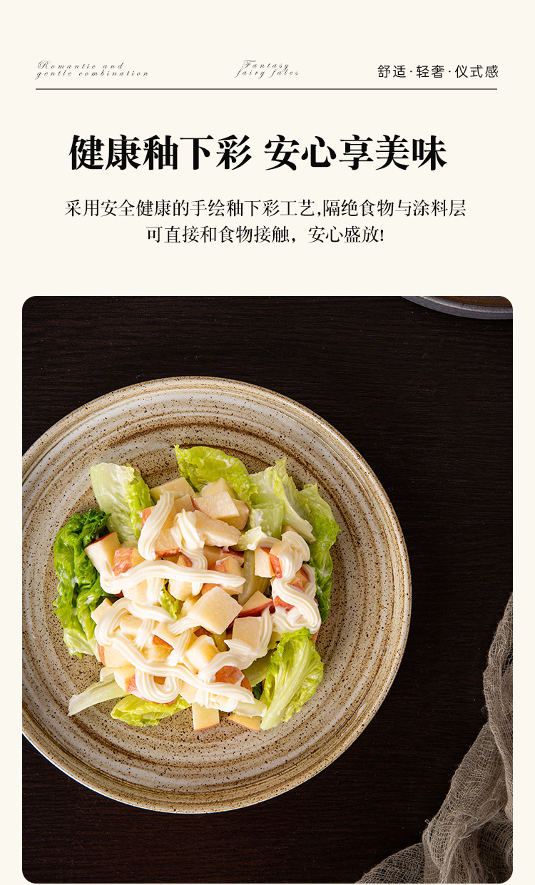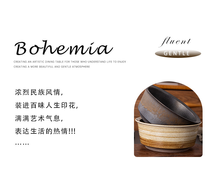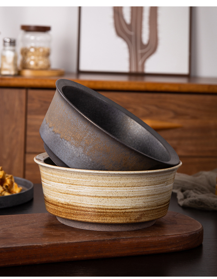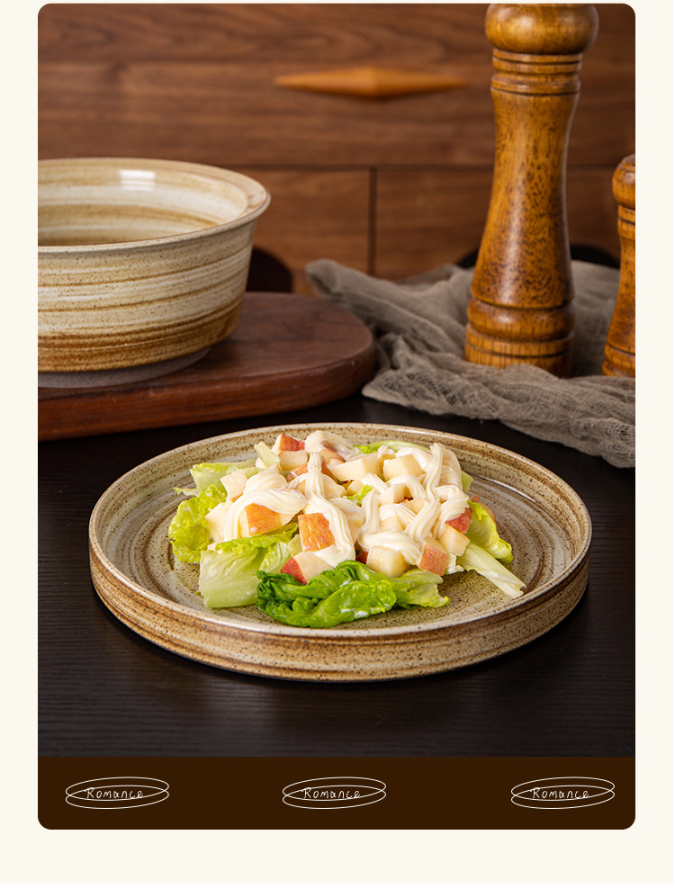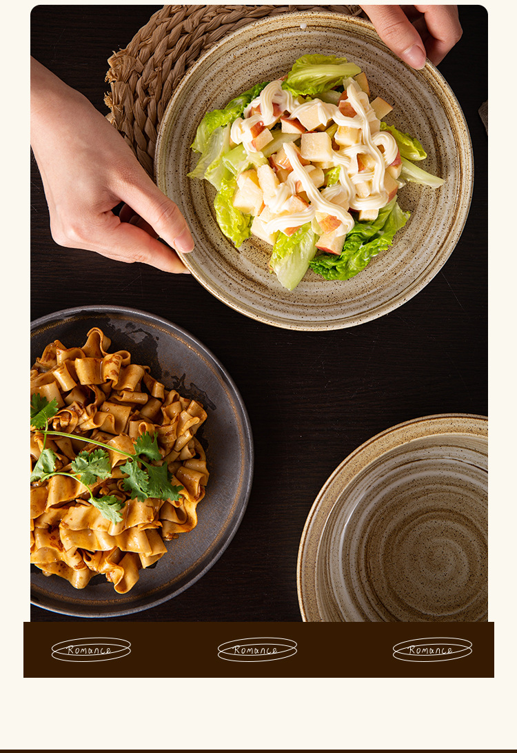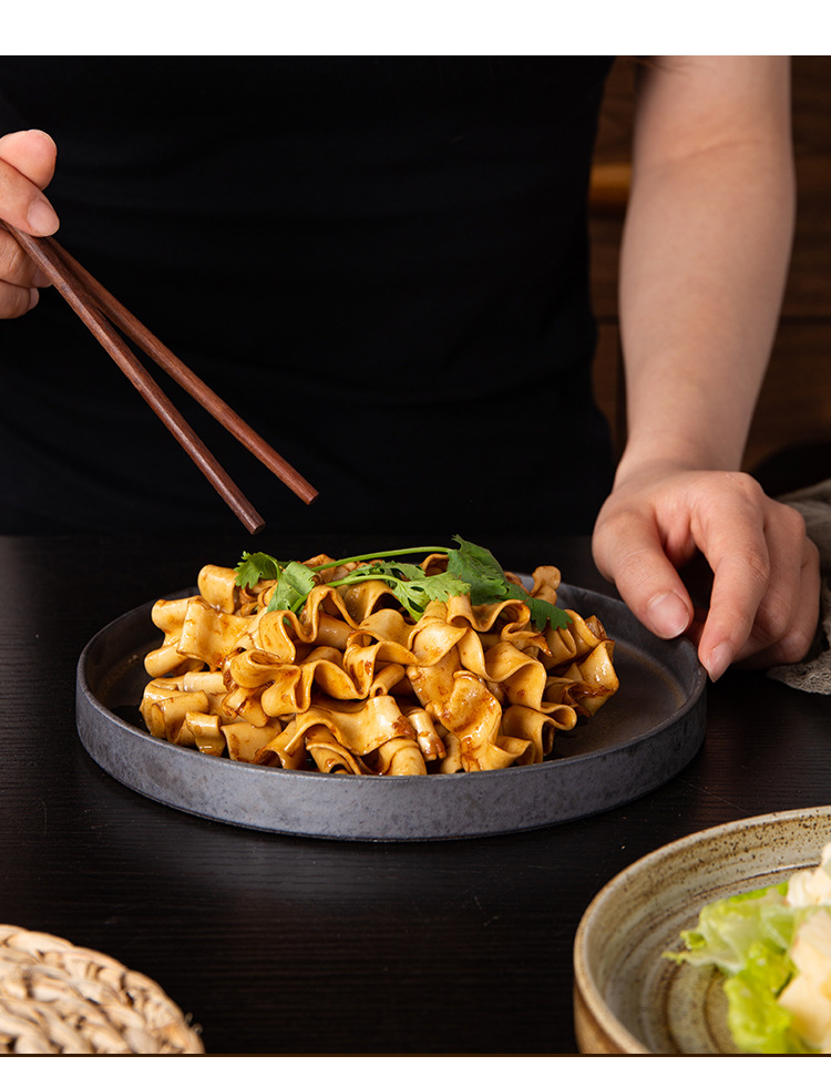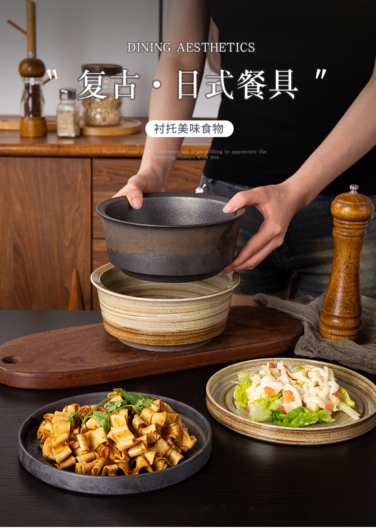 レトロ粗陶食器皿家庭用料理皿陶磁器餃子皿ステーキ皿日本式トレー茶碗スープ碗