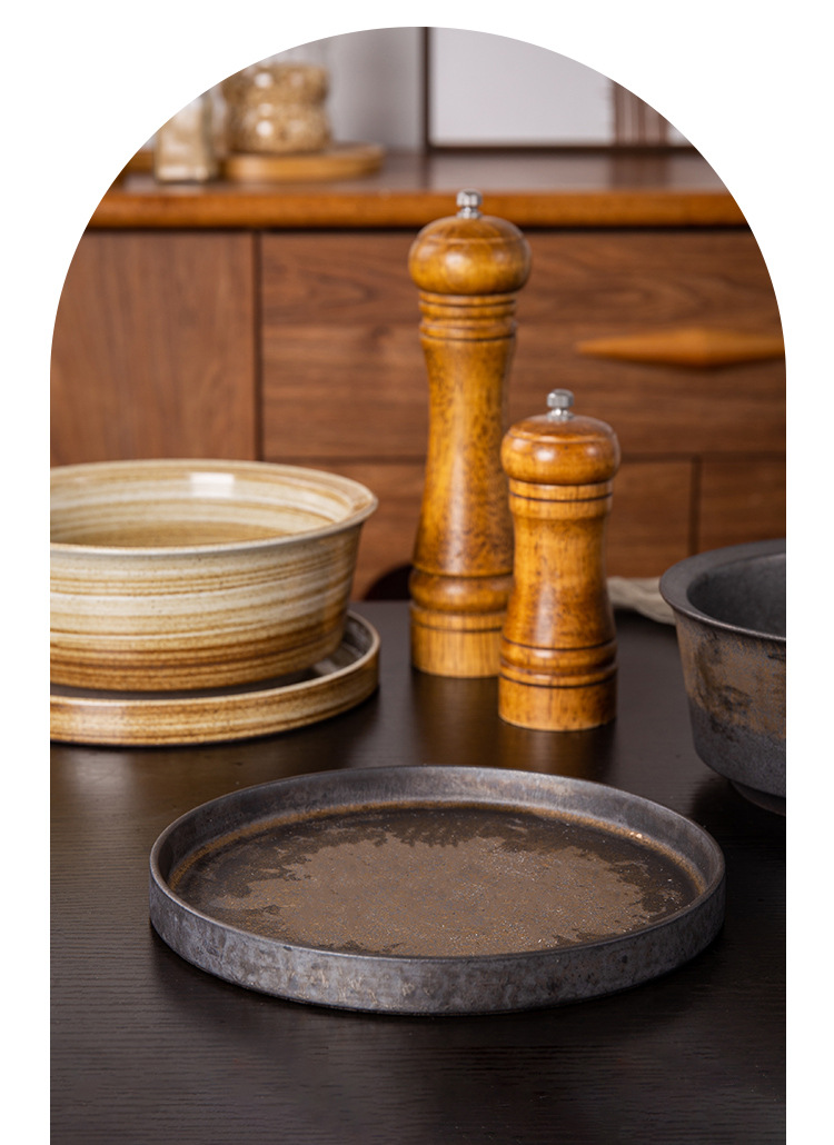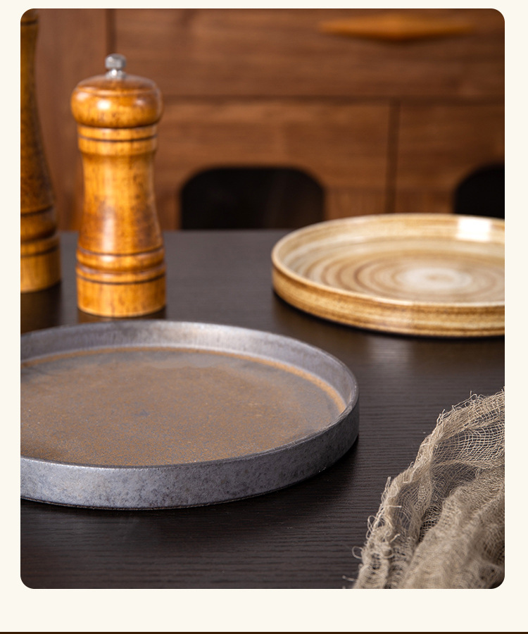 粗陶サビ釉薬皿レトロ陶磁円盤茶点皿果物皿小食皿家庭用軽豪華高級感食皿
