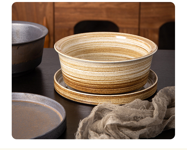 粗陶食器トレー料理皿レトロ餃子皿日本式陶磁器碗皿セット家庭用茶碗スープ碗