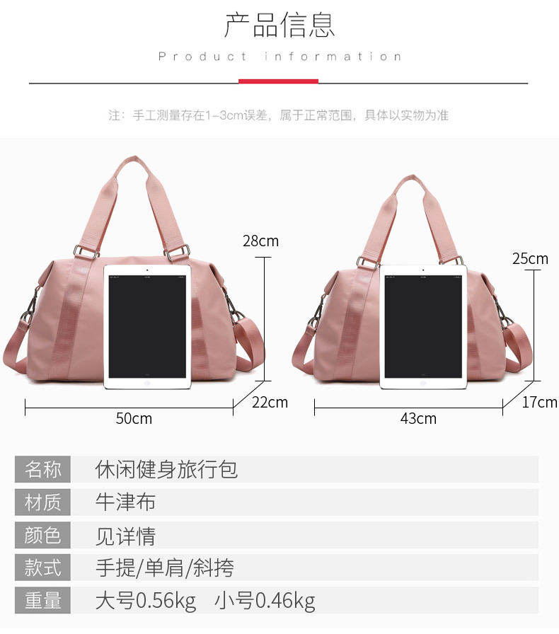 フィットネスバッグ手提げヨガバッグレディース干湿分离防水大容量荷物バッグ小旅行バッグ