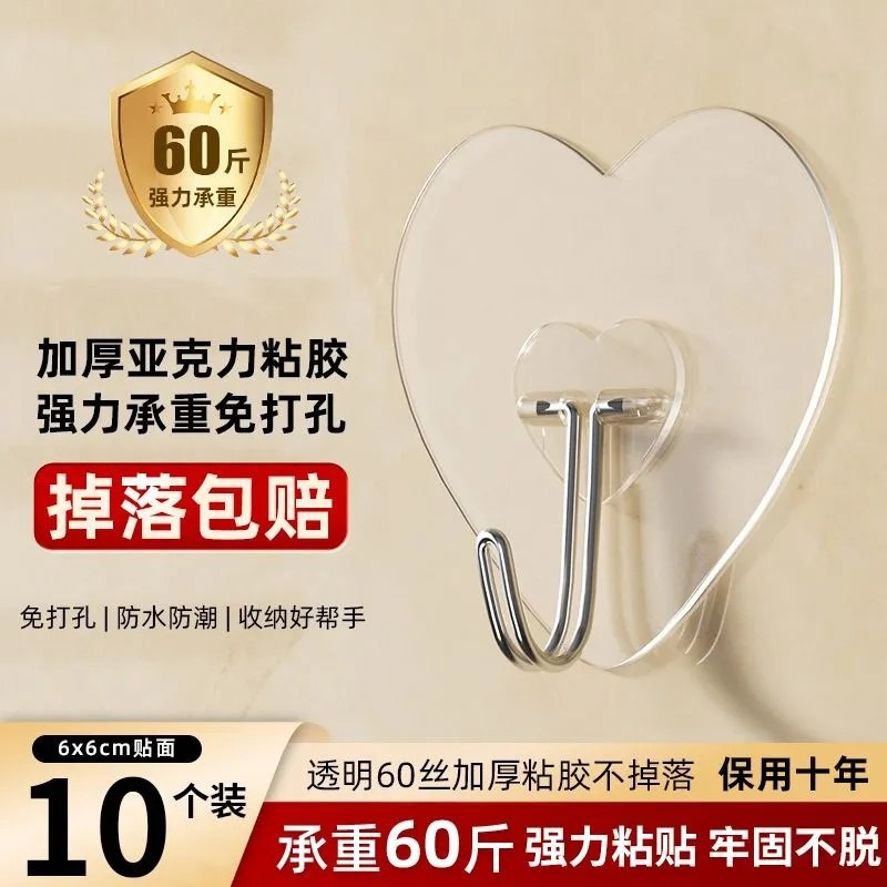 透明爱心免打孔粘钩家居厨房浴室客厅挂钩金属装饰强力承重免钉