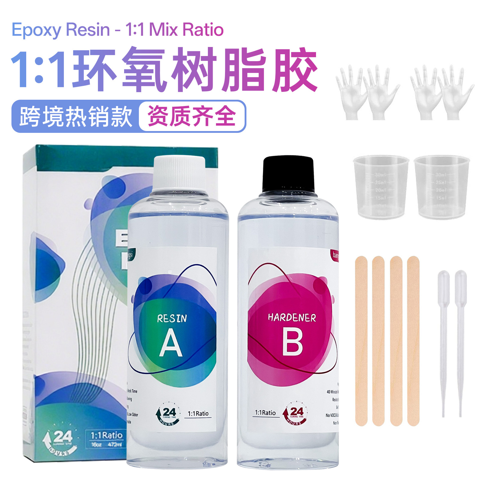 跨境专供 手工diy滴胶高透明耐黄变环氧树脂ab胶1:1水晶滴胶胶水