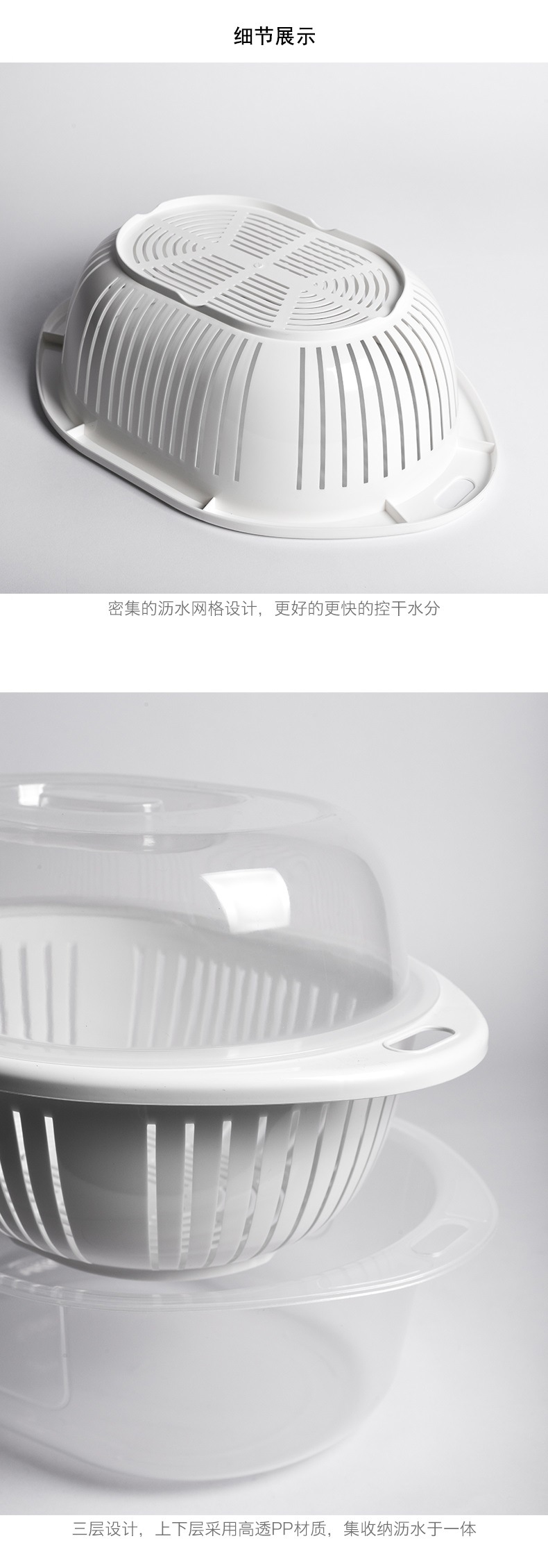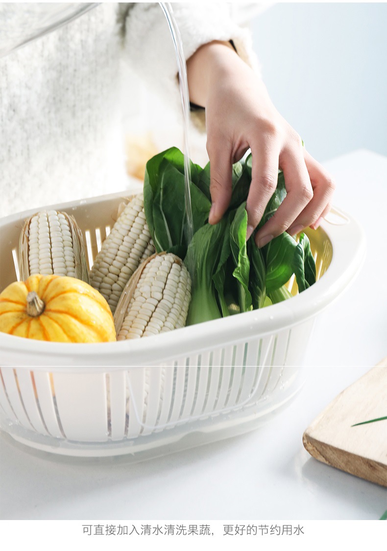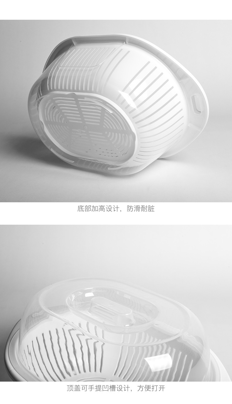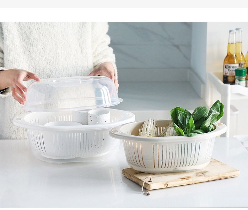 蓋付き二層プラスチック野菜洗いバスケット、キッチン排水バスケット、家庭用多機能ラウンドフルーツプレート、野菜洗い桶、フルーツバスケット