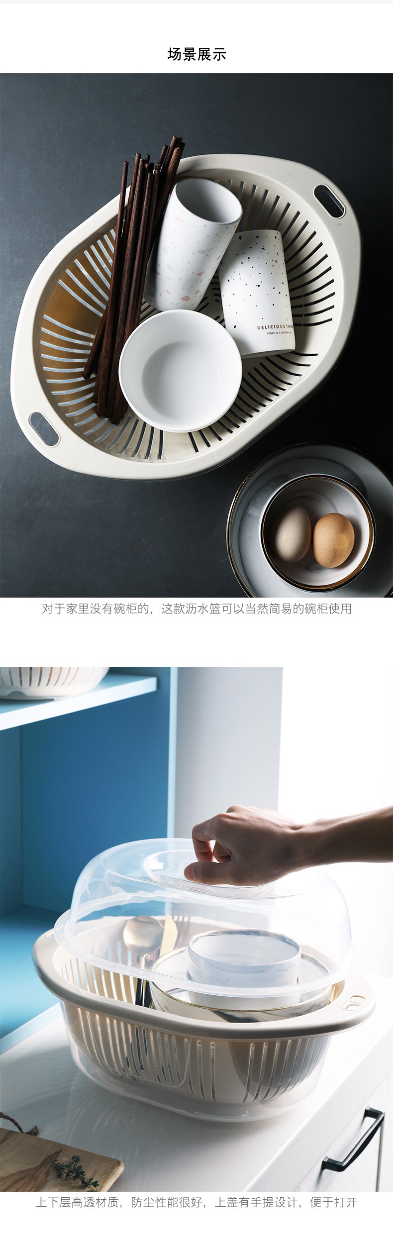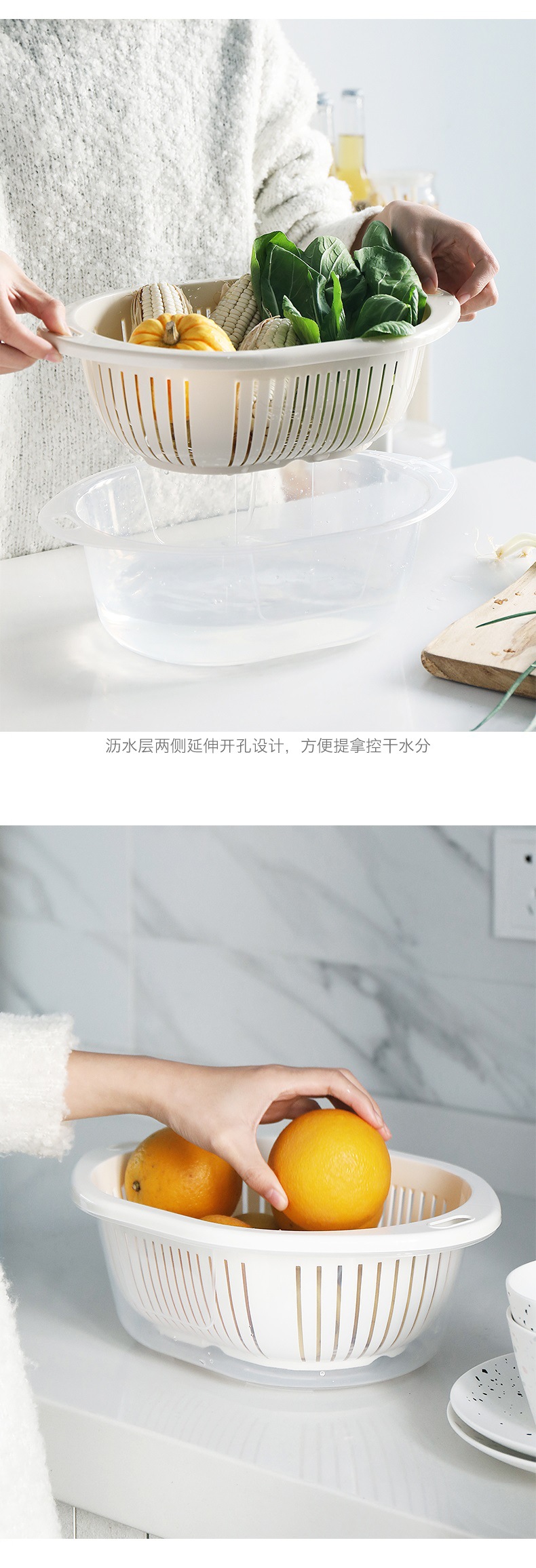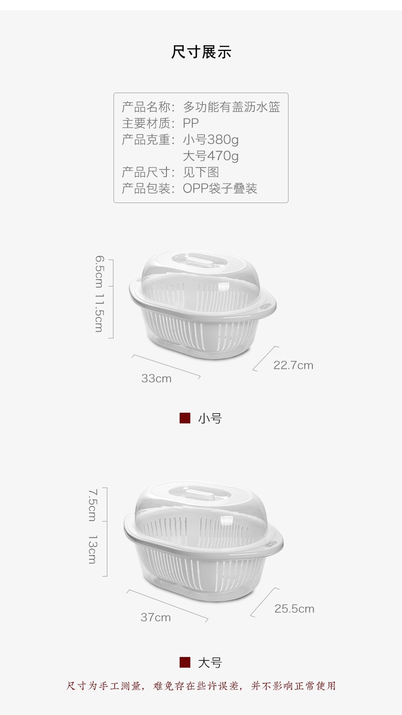 蓋付き二層プラスチック野菜洗いバスケット、キッチン排水バスケット、家庭用多機能ラウンドフルーツプレート、野菜洗い桶、フルーツバスケット