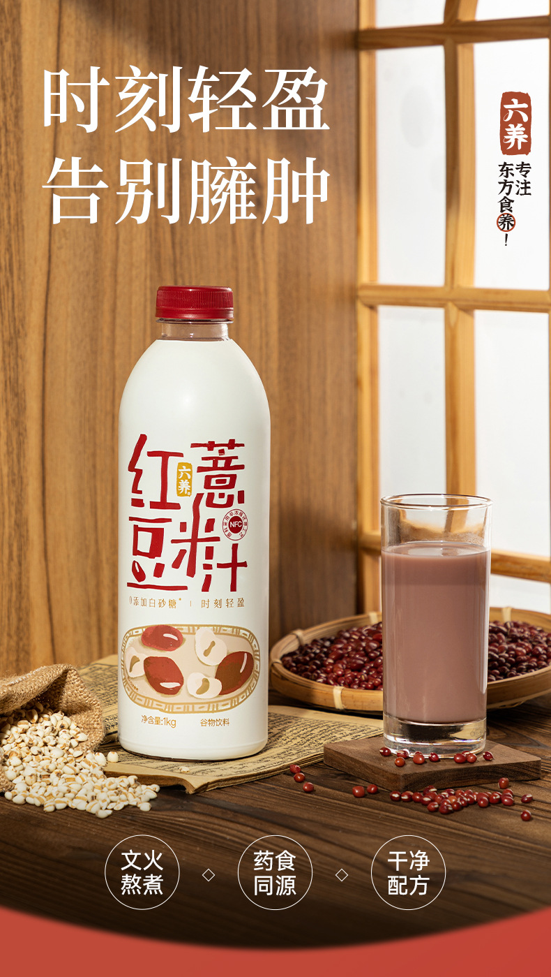 Liuyang 小豆と大麦ジュース 全粒粉の栄養価の高い朝食ドリンク 白砂糖 低脂肪食事代替ドリンク 1L