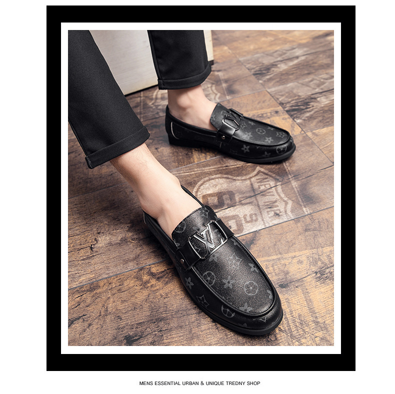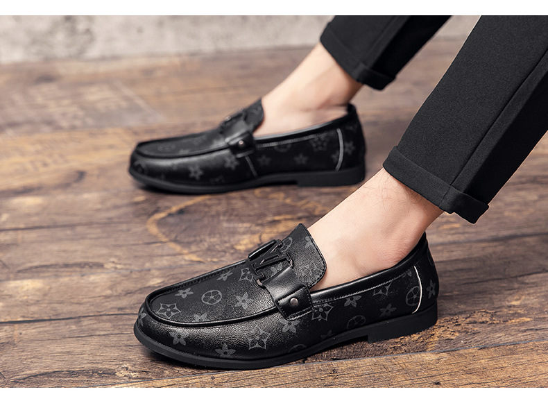 欧洲站豆豆鞋2025新款四季男皮鞋反绒皮压花字母舒适真皮一脚蹬潮
