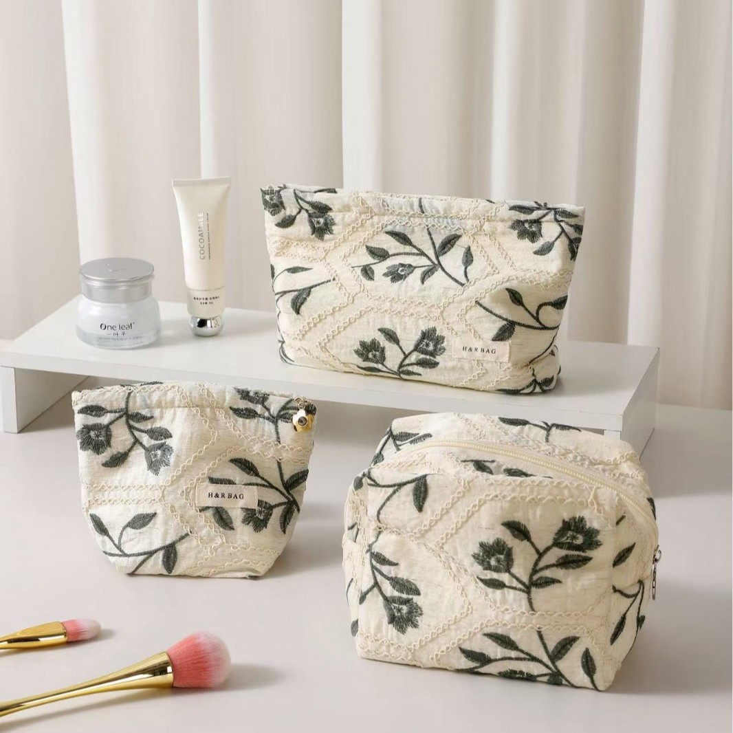 綿布刺繍花柄メイクブラシ化粧ポーチ携帯用旅行用品雑貨大容量スキンケア用品収納バッグ