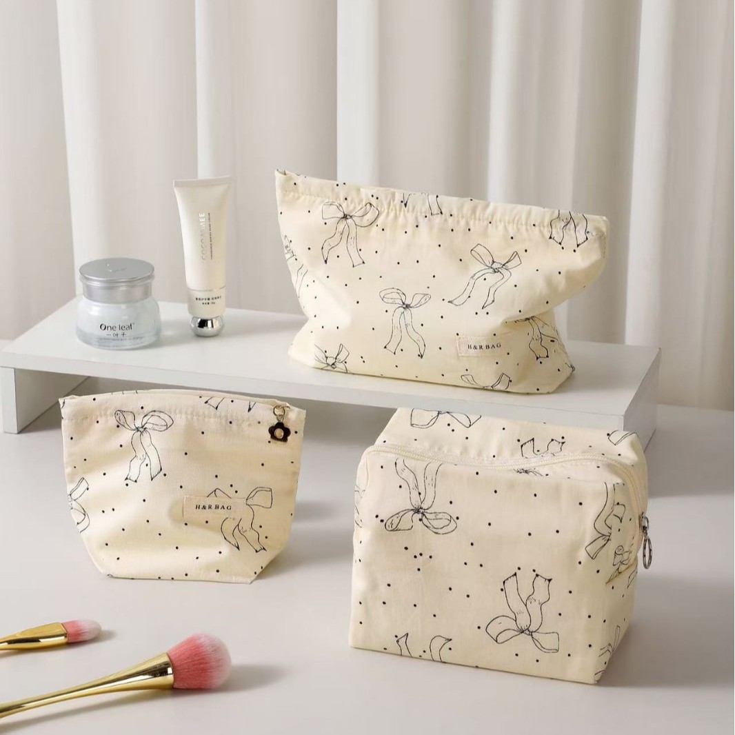 跨境粉色蝴蝶结棉布化妆包大容量护肤品收纳包便携洗漱包套装