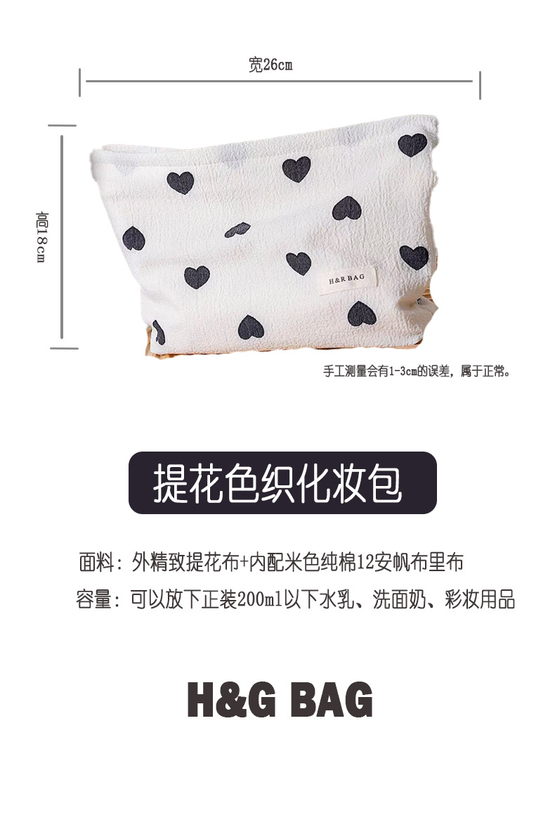 可爱甜美爱心刺绣条纹布艺化妆包随身便携收纳袋大容量洗潄包粉白