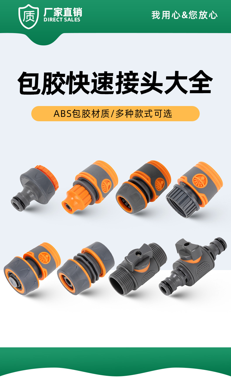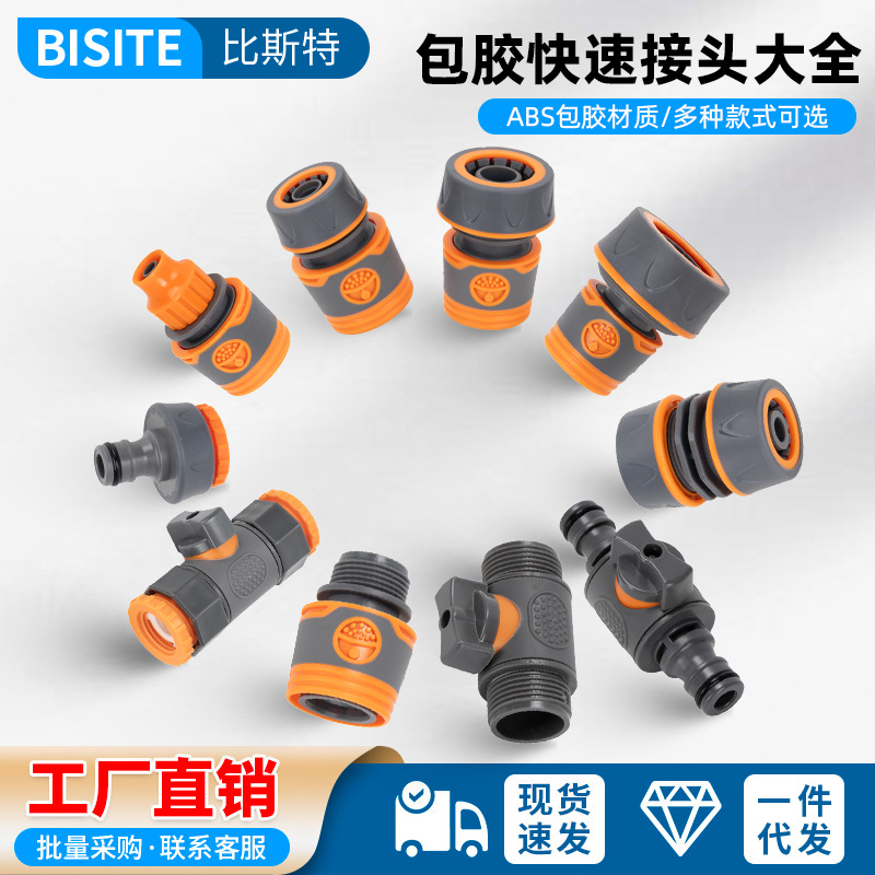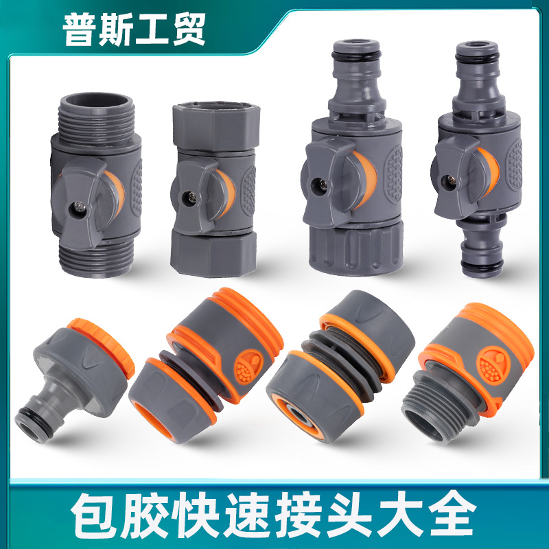 单奶嘴包胶快接直通带开关阀门接头3分4分6分快速接软管修补快接