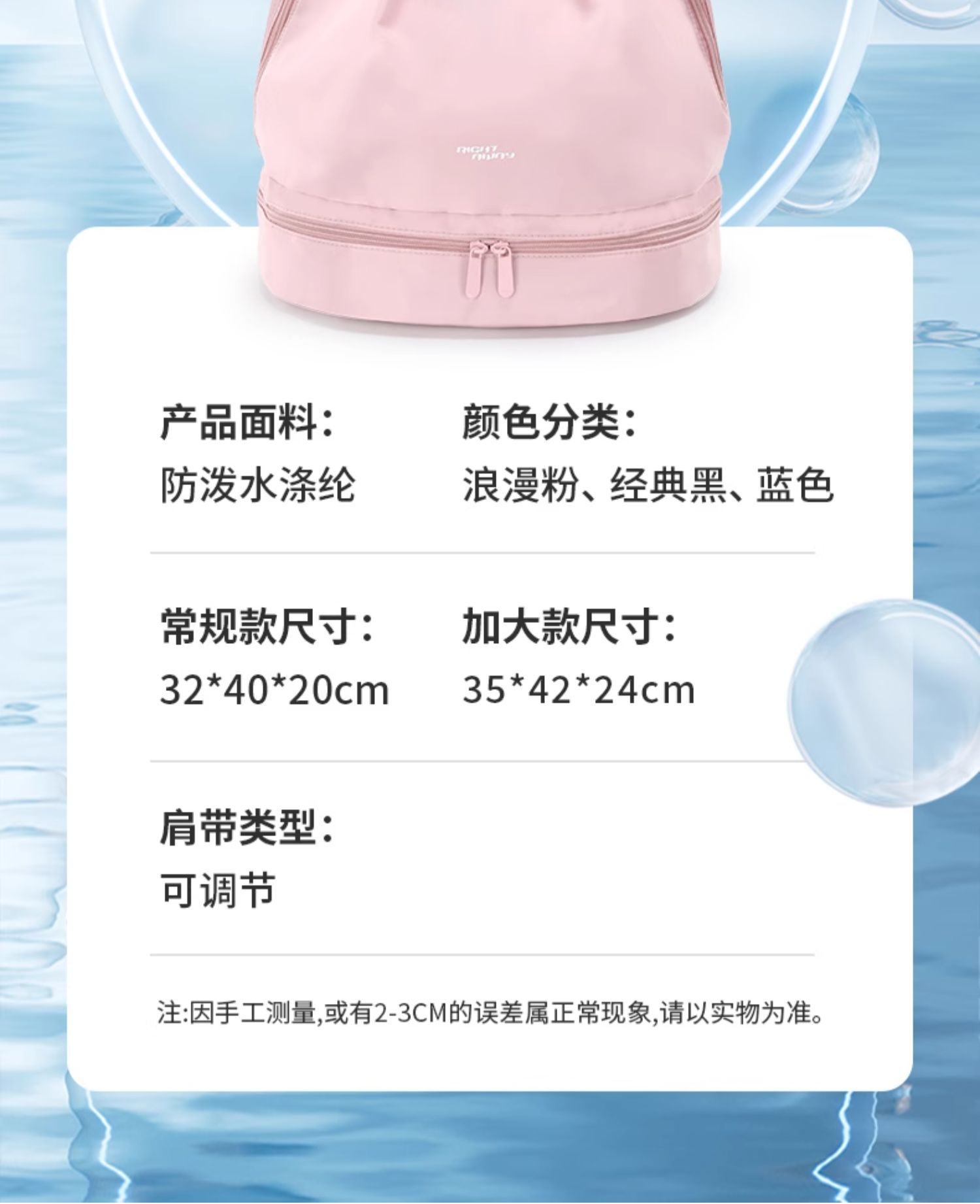 水泳用収納バッグ、乾湿分離、女性用スポーツおよびフィットネス用品、男性用入浴用巾着防水バッグ、バックパック、旅行