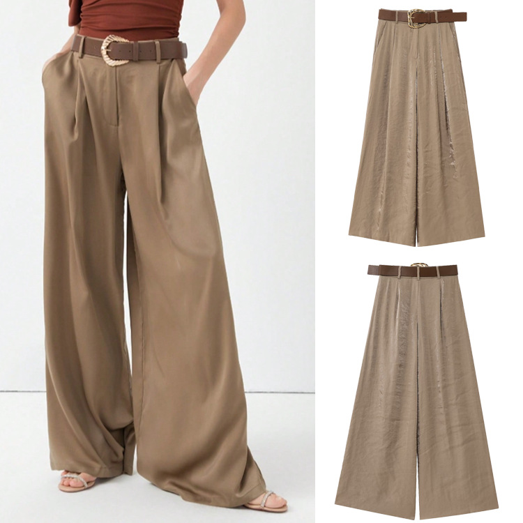 クロスボーダー春の新作レディースファッション、ヨーロッパとアメリカンスタイルのファッショナブルで多用途なベルト付きシルクサテンカジュアルストレートパンツ