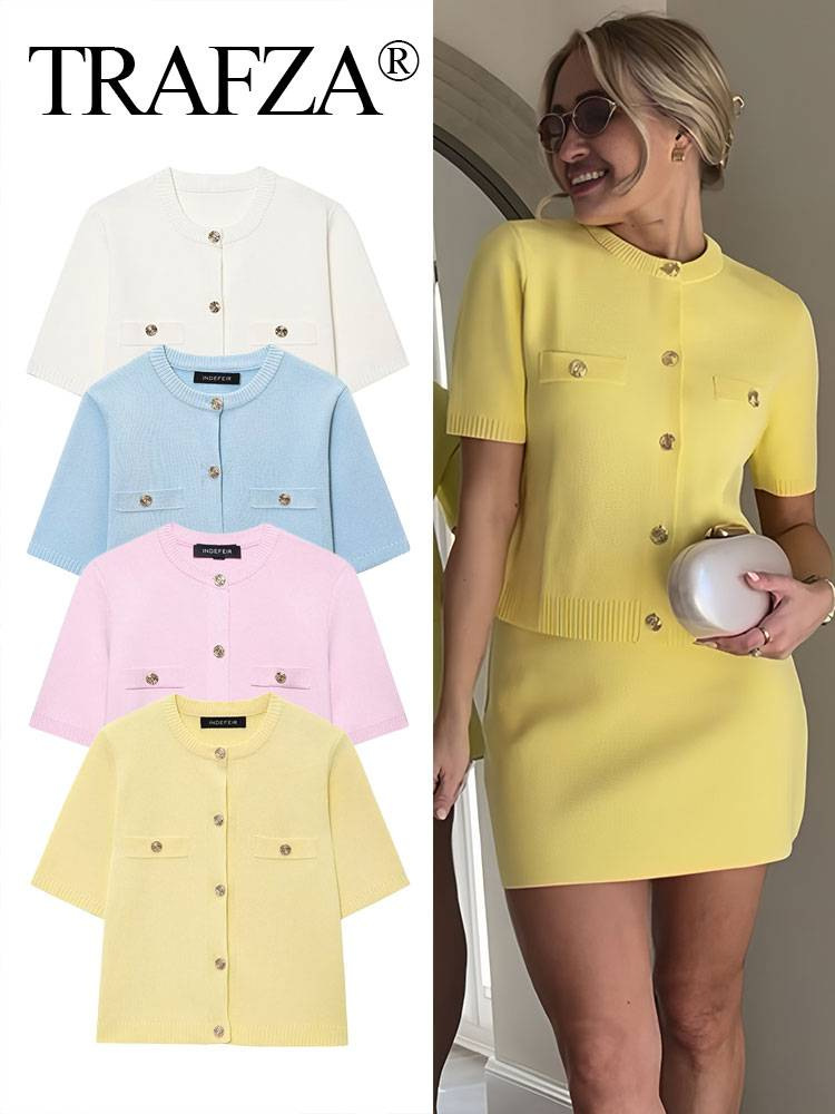Z春2025新商品女性半袖シンプルファッション百合ニットコート半身スカート1822022 1822023