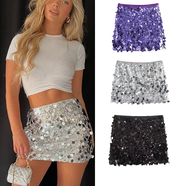 クロスボーダーレディースファッション 夏新作 欧米風セクシーAラインスカート ハイウエスト ヒップハグ スパンコールミニスカート