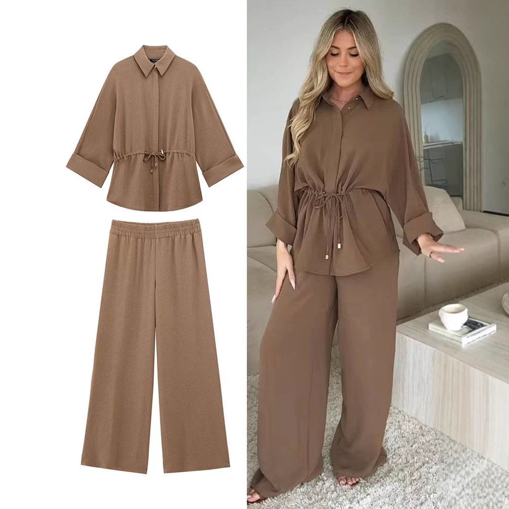 外国貿易クロスボーダーヨーロッパとアメリカの春の新作レディースファッションカジュアルドレープ長袖ラペルシャツとズボンスーツ