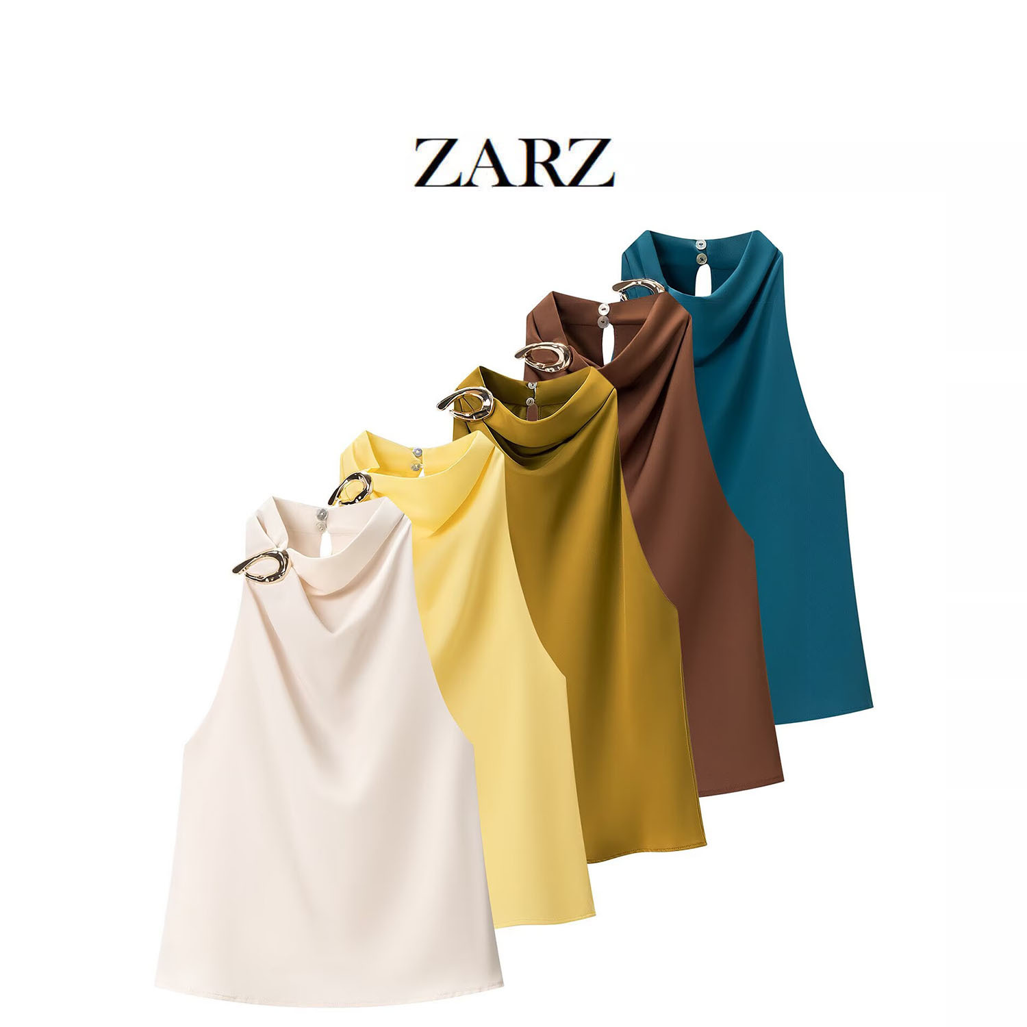 ZARZ 自制 欧美风 新款女装 洋气时髦附料饰挂脖领上衣 8919 911