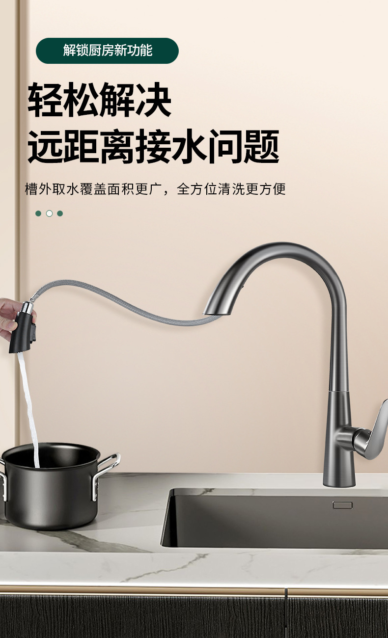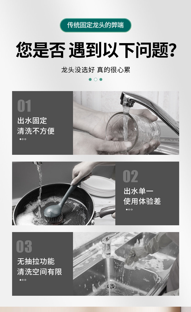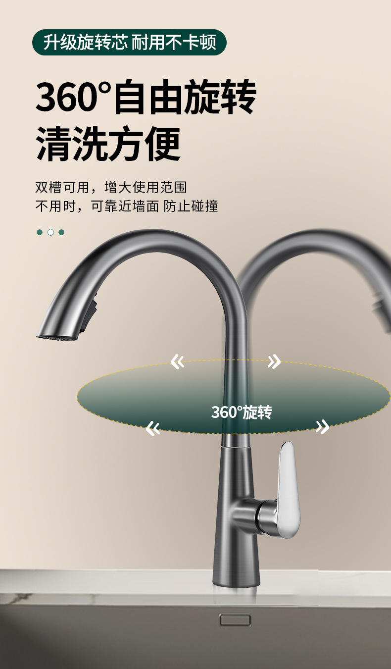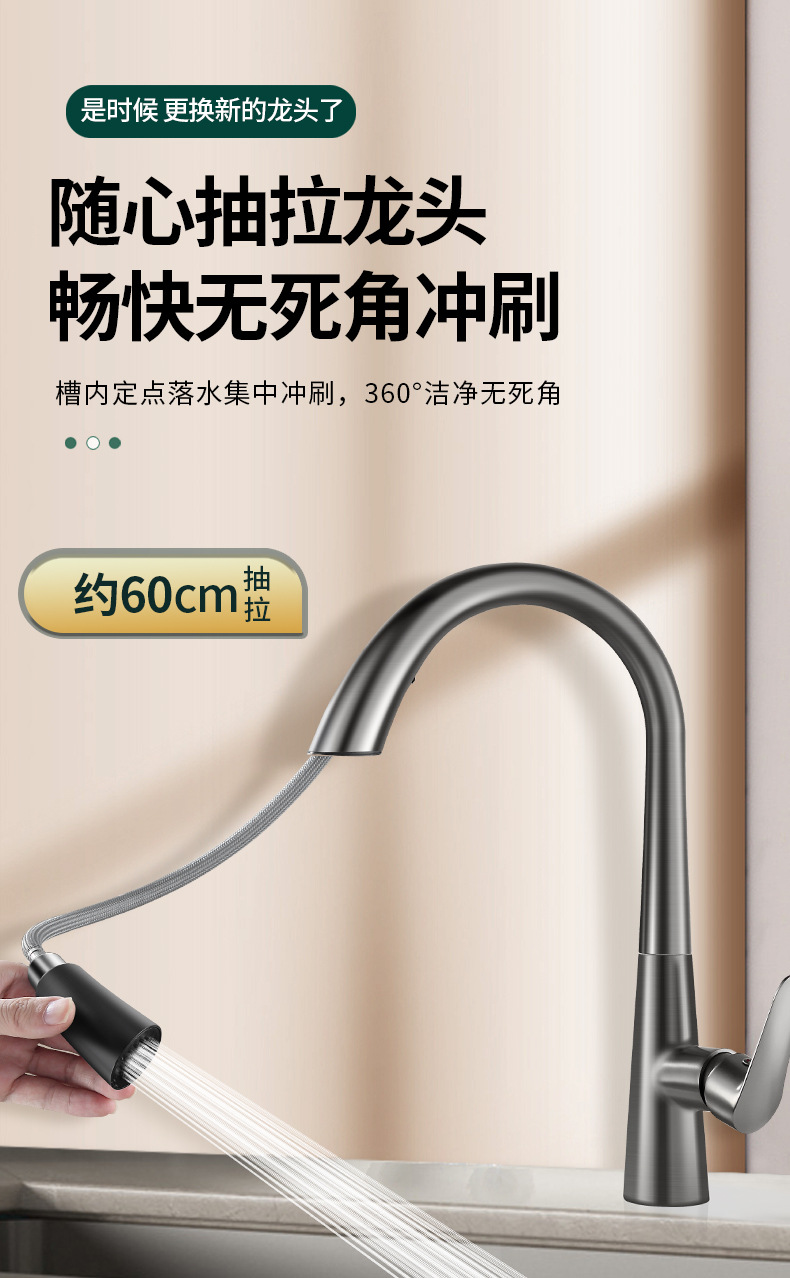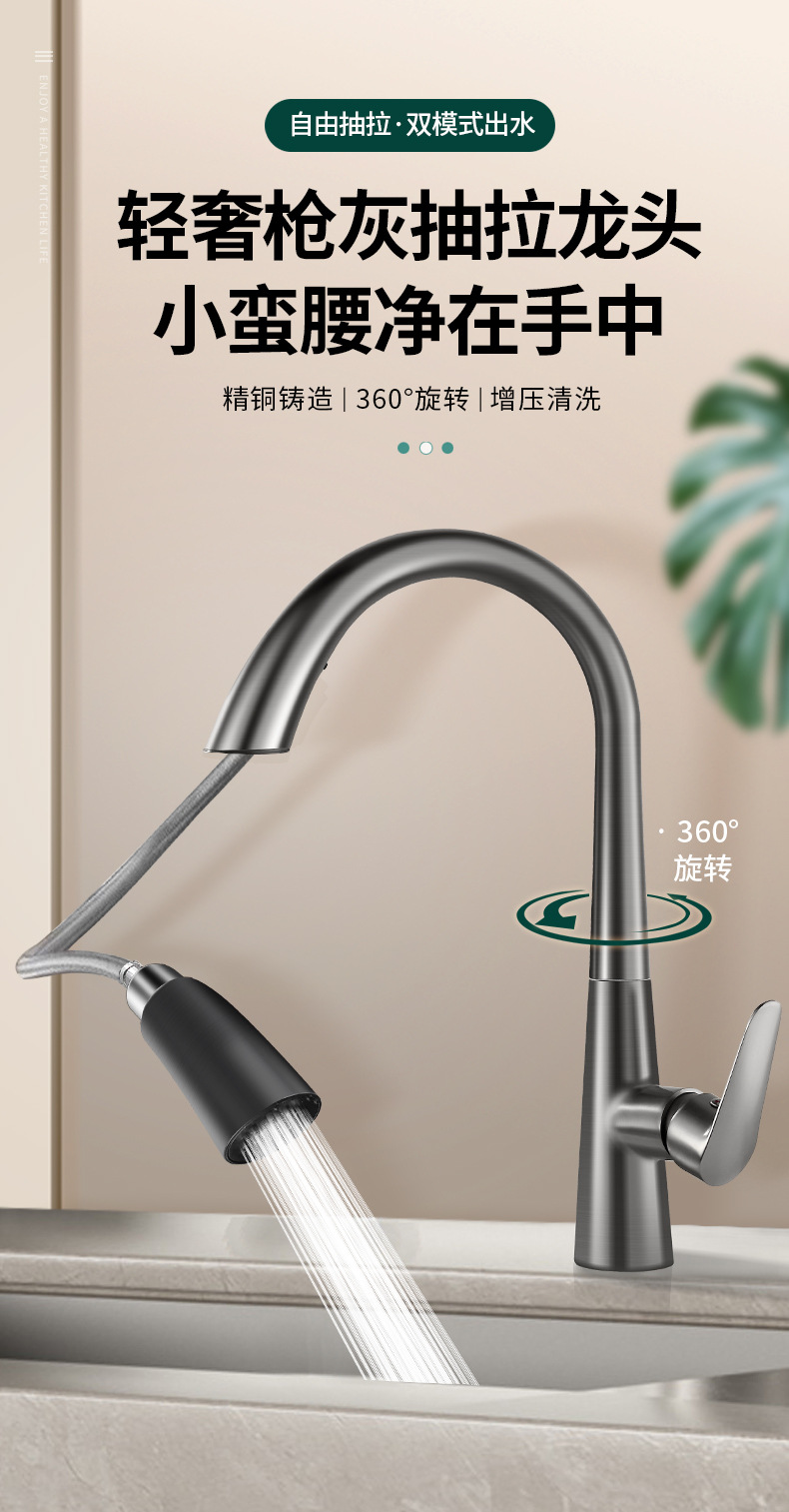 家庭用台所万能引き式蛇口伸縮式野菜鉢水槽冷熱両用360度掻き洗い回転