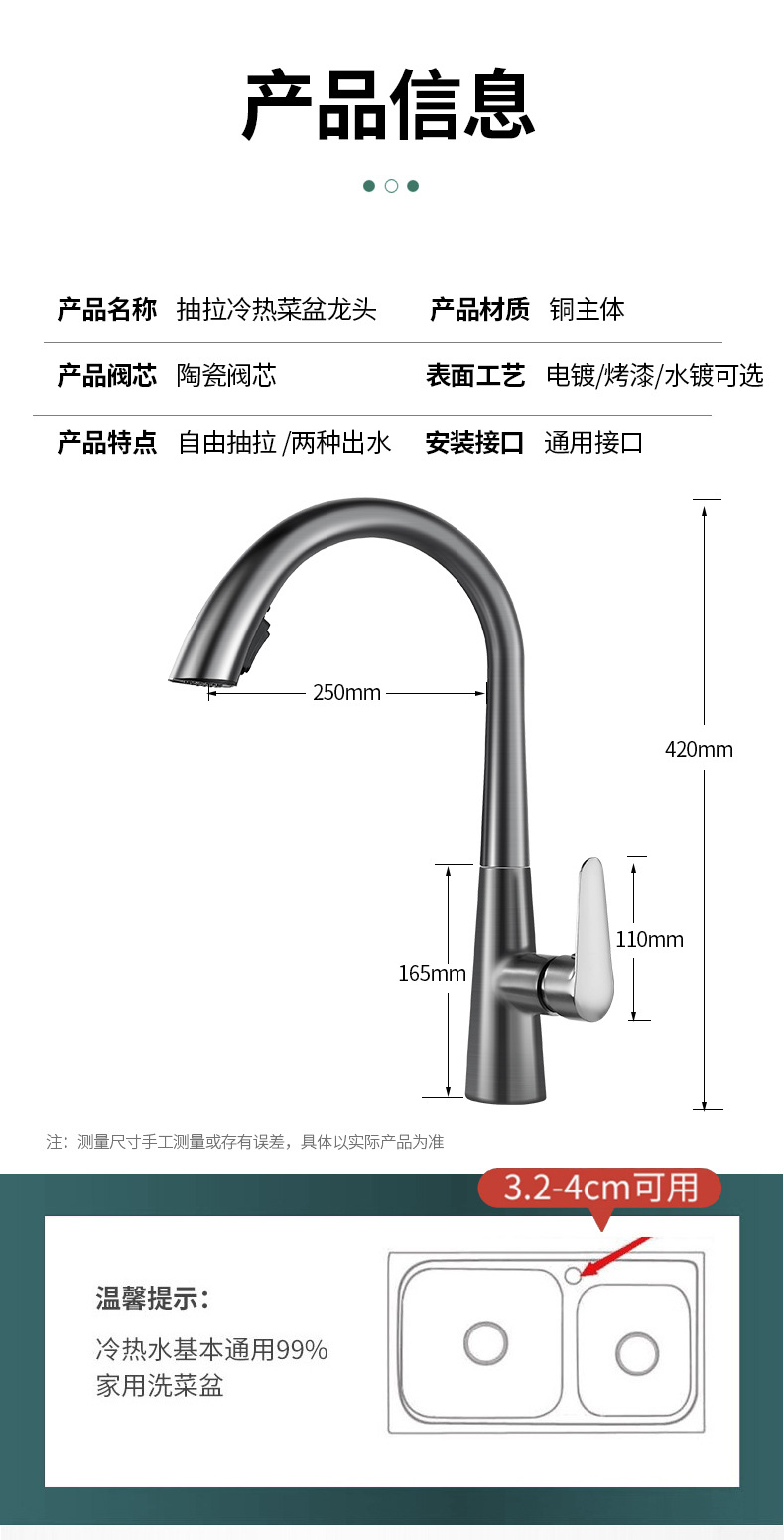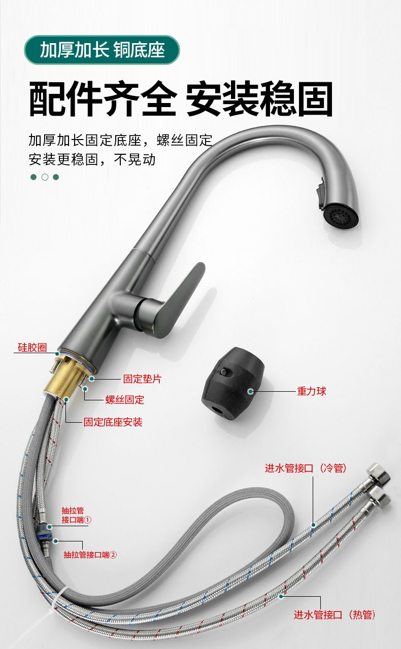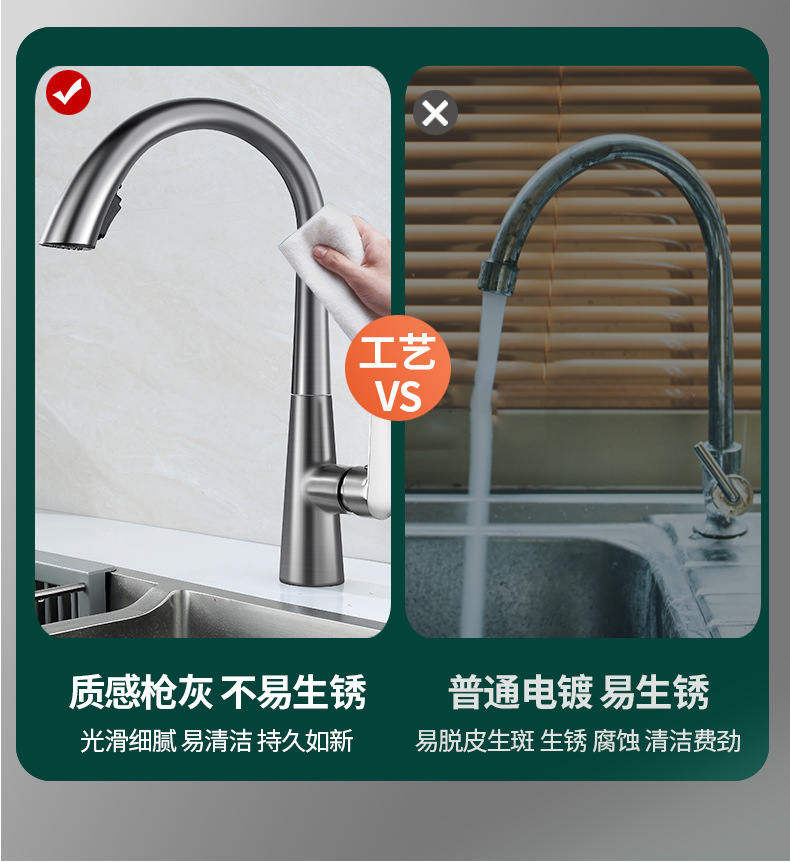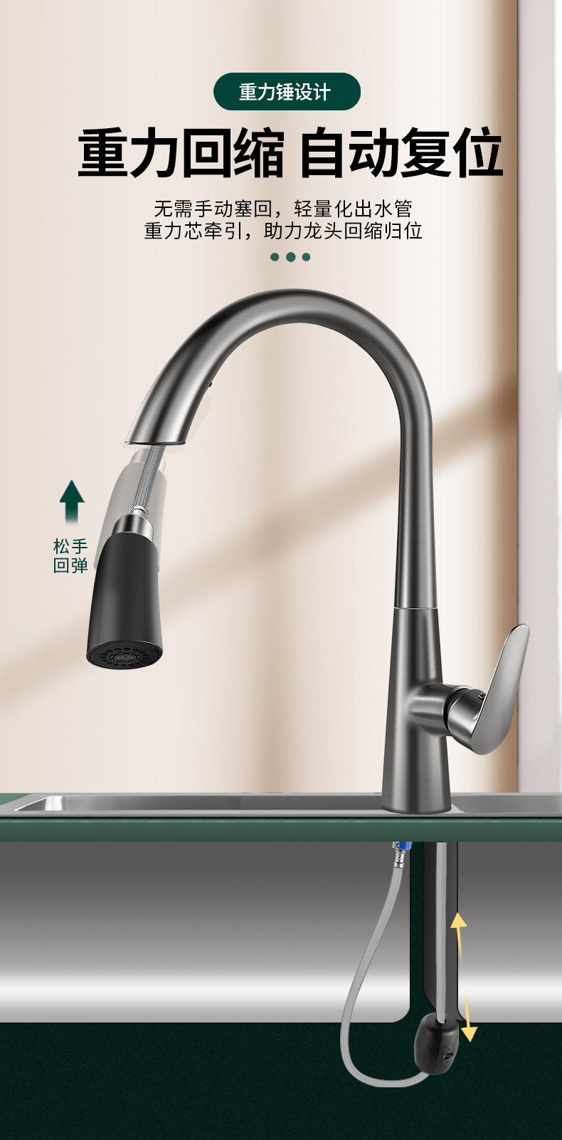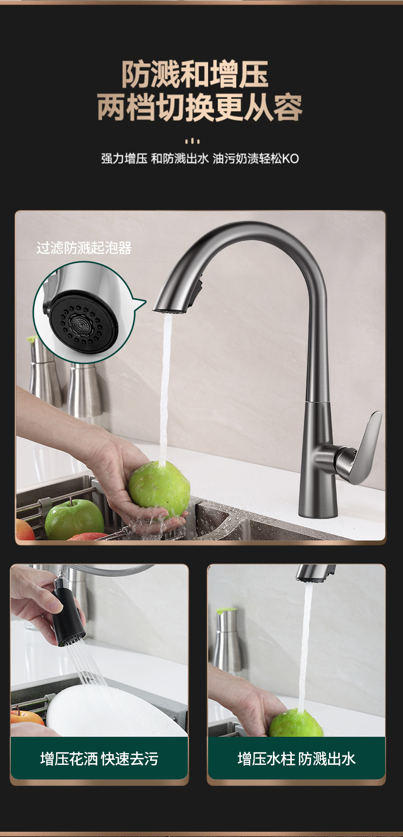 家庭用台所万能引き式蛇口伸縮式野菜鉢水槽冷熱両用360度掻き洗い回転