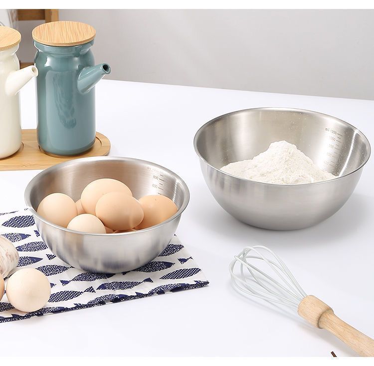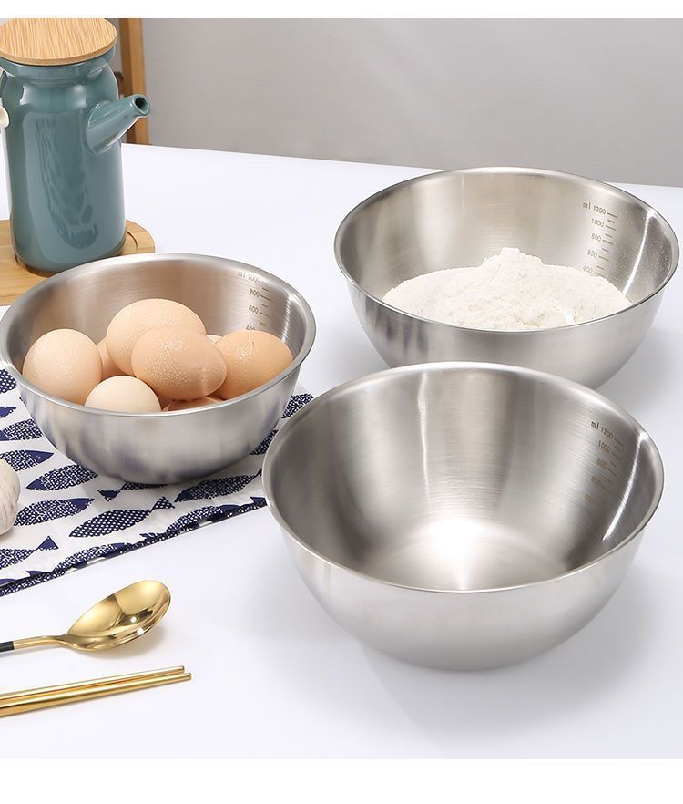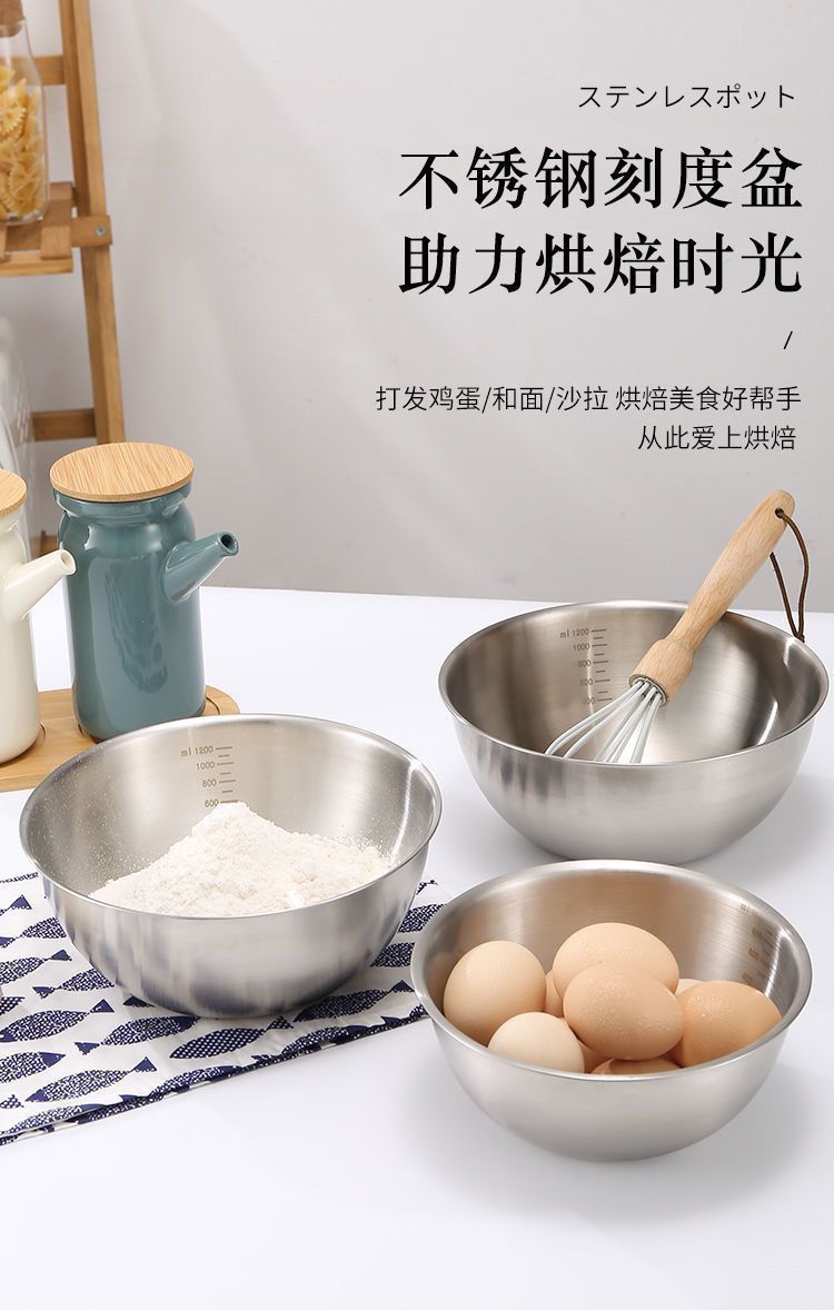 【带刻度】不锈钢沙拉碗料理盆打蛋和面凉拌哑光碗水果烘焙家用碗