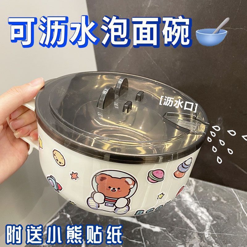 食品グレードのステンレス製インスタントラーメンボウル、蓋付き、水切り機能付き、麺類の混ぜ合わせに最適、学生用弁当箱、寮や職場での使用に最適、水切り設計