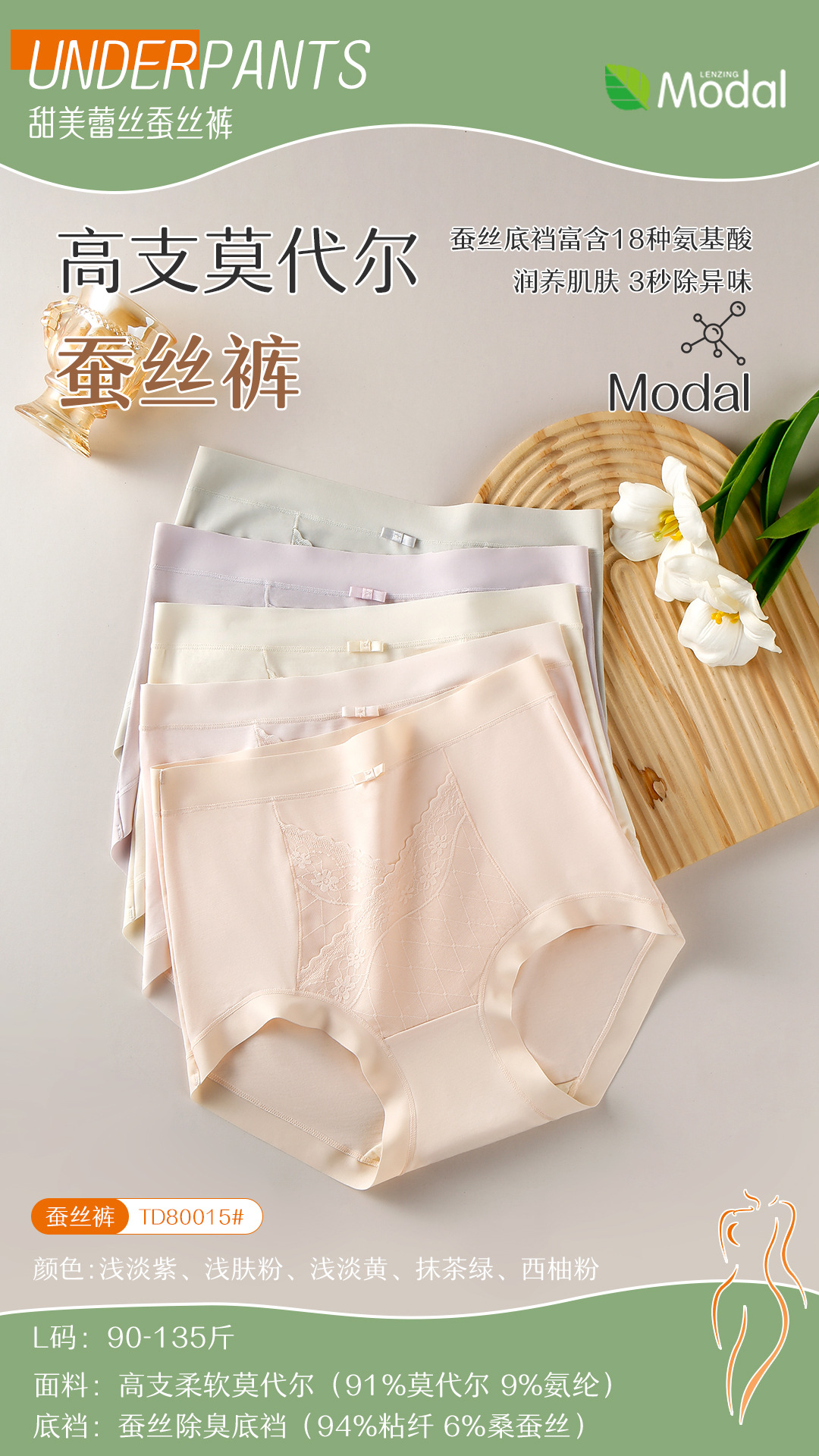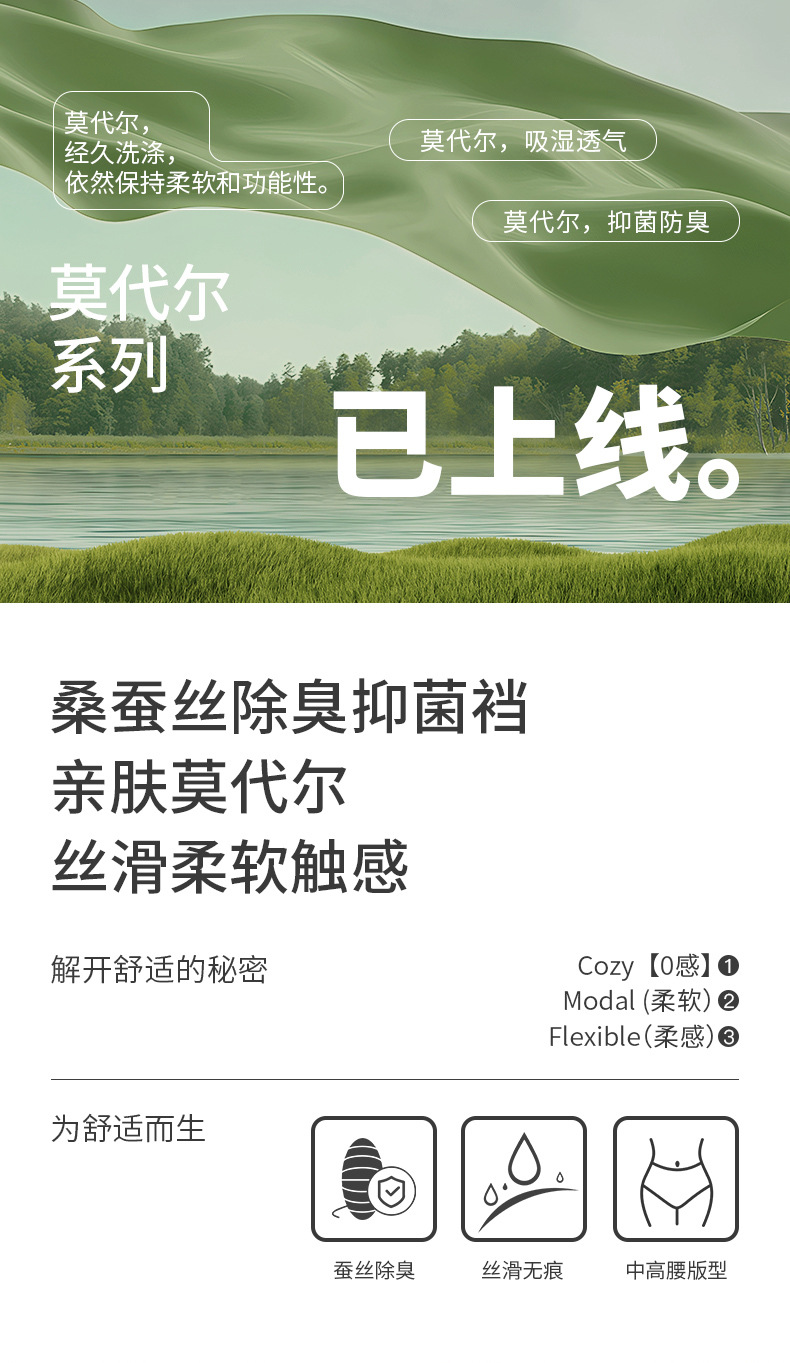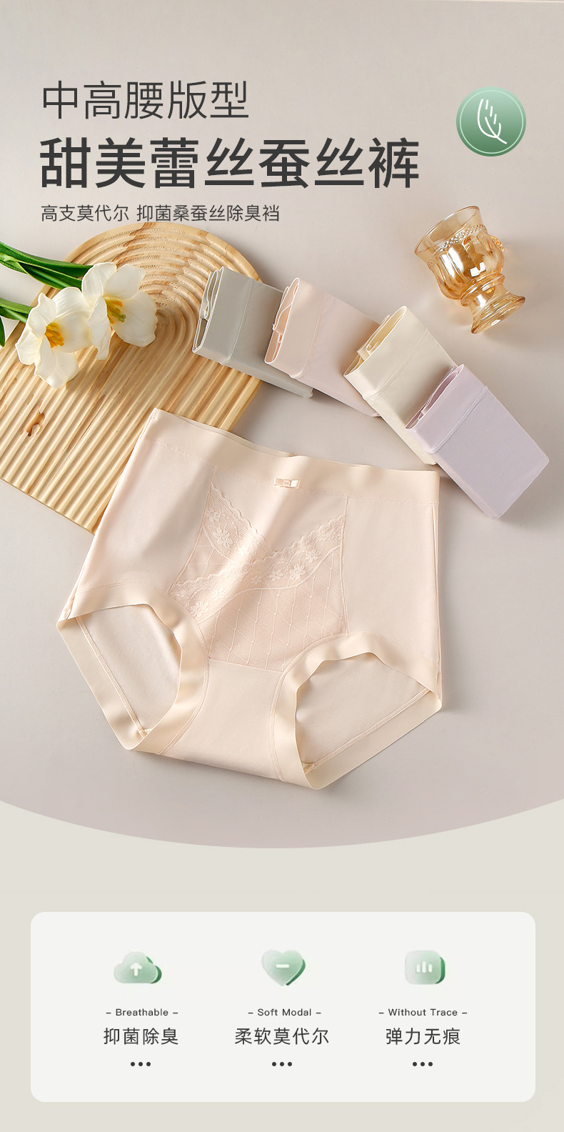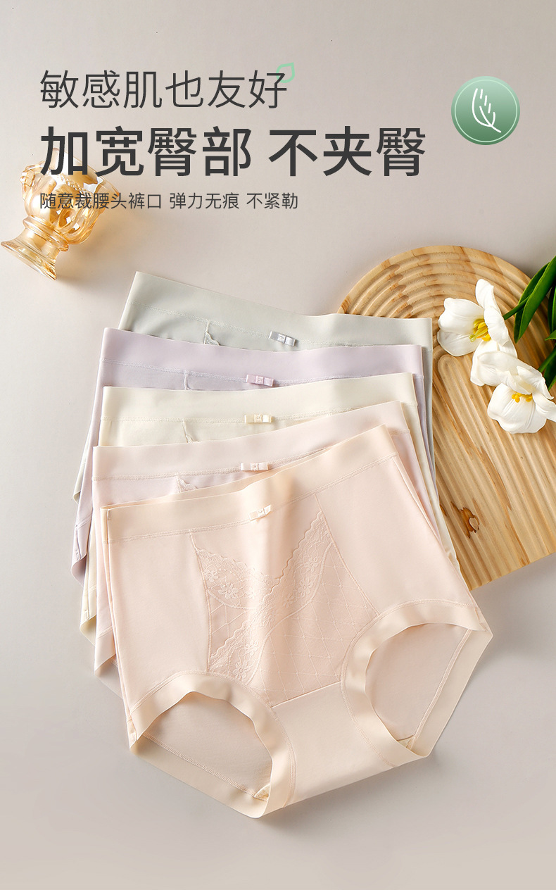 女の子用ハイカウントモーダル下着、通気性と快適、ミッドハイウエスト、お腹コントロール、シームレスブリーフ、抗菌シルク下着