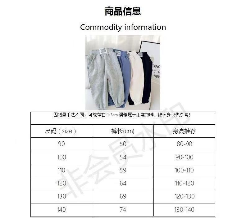子供の春と秋の男の子のズボンの女の子のズボンの秋の中性の赤ちゃんの中小子供のカジュアルなズボンの子供服
