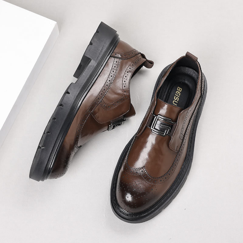 男鞋2025新款英伦风商务上班休闲皮鞋男士西装潮流百搭布洛克鞋子
