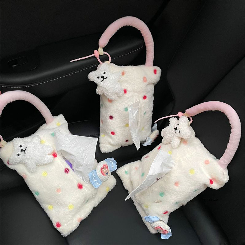 新款卡通车载纸巾盒毛绒可爱小熊汽车挂式抽纸盒车内装饰纸巾挂袋