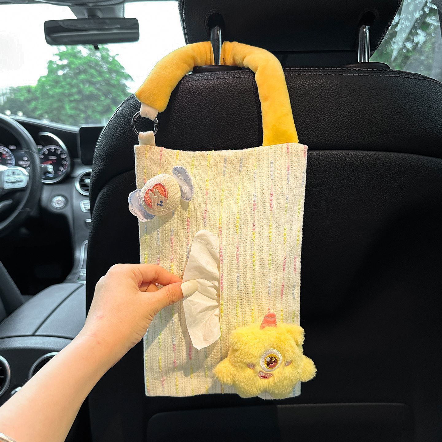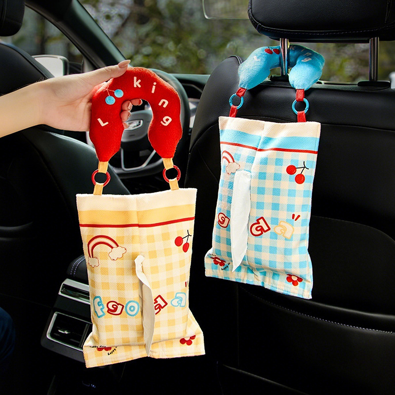 車のティッシュの箱のアイデアの愛の車のシートの吊り下げ式のティッシュの袋のかわいい多機能の車のティッシュは引き出します。