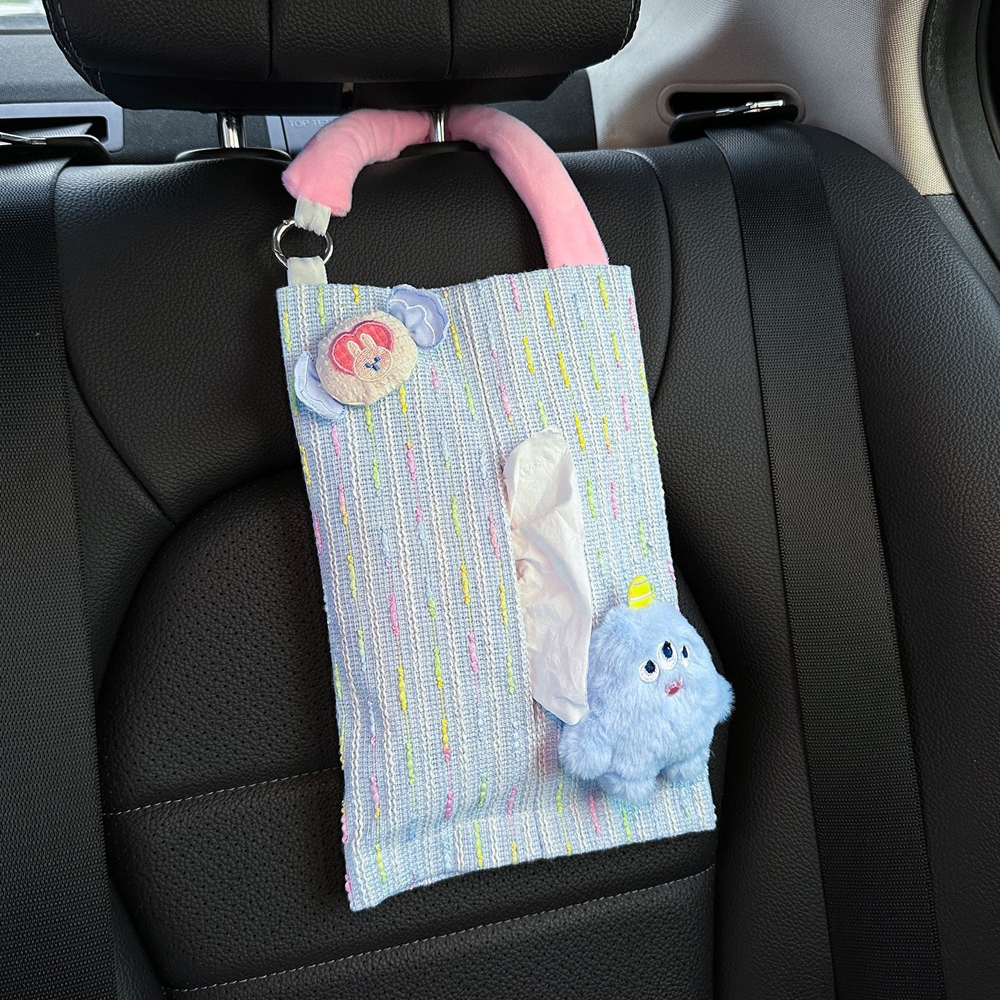 云朵泡芙格车载纸巾盒汽车座椅前后排抽纸袋挂式车用纸巾袋女可爱