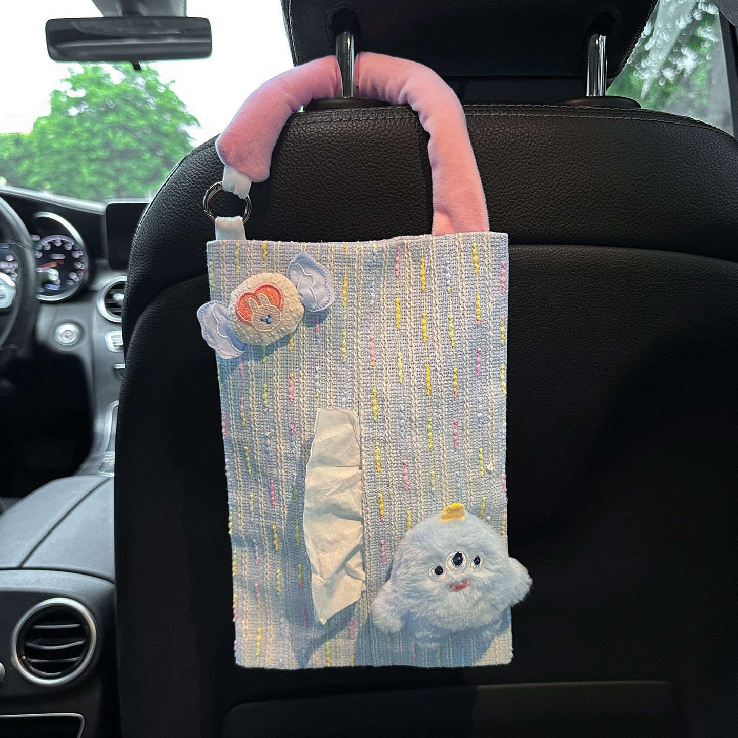 手提车载纸巾盒可爱兔兔车内多功能抽纸盒座椅收纳悬挂纸巾收纳包