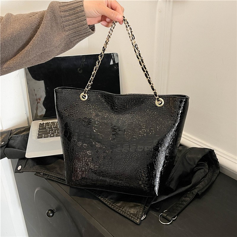 2025 新しいトレンディなクロコダイルシンプルなハンドバッグファッショナブルな明るいレザー韓国スタイルの女性のショルダーバッグ大容量トートバッグ