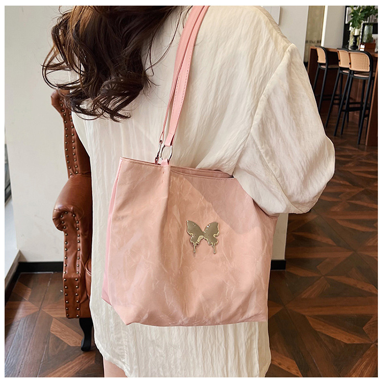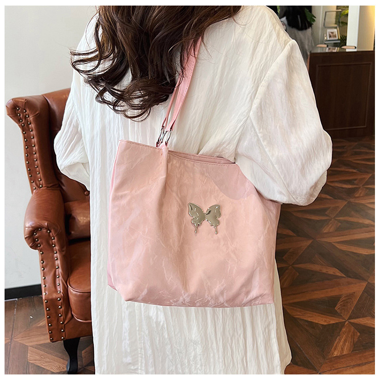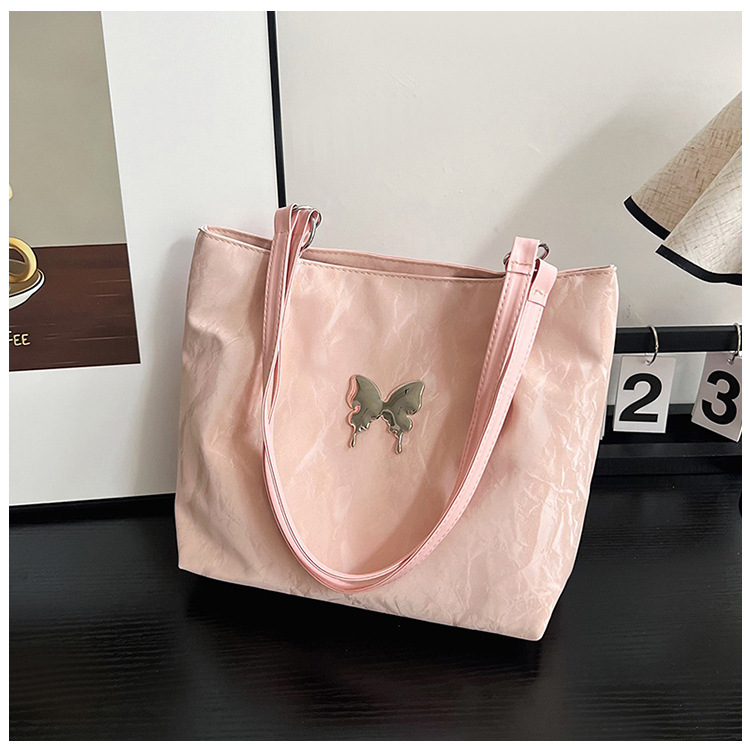 大容量ファッションinsシングルショルダーバッグの新型韓国版の優しい質感のトートバッグの蝶結びに百合のハンドバッグの女性がいます。