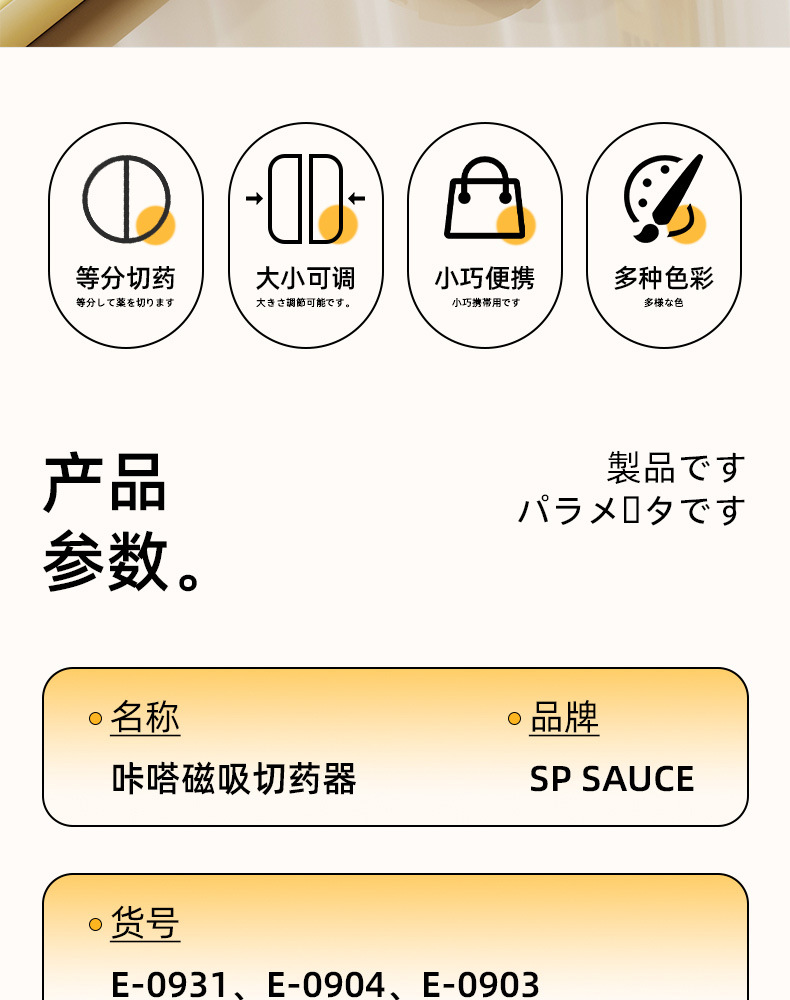 日本系SP SAUCE磁気吸引薬器分薬器一分二切薬神器携帯薬収納薬箱