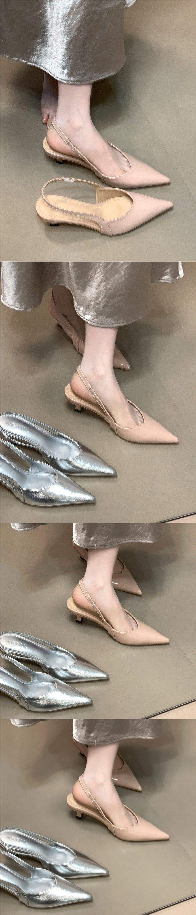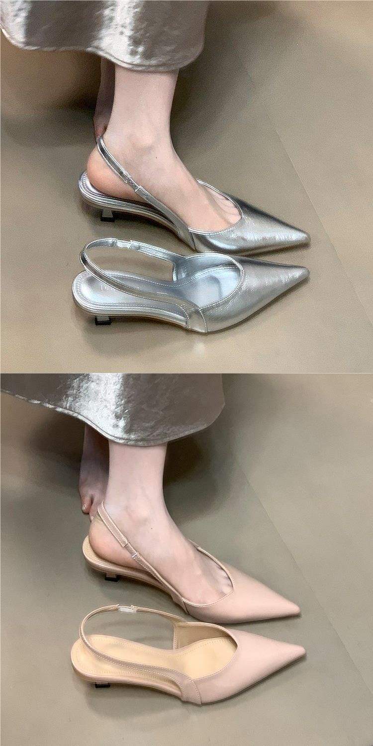2025気質浅口ハイヒールレディースヌードカラー浅口子猫ヒールエレガントなポインテッドトゥシングルシューズレディース春スタイルバックサンダル