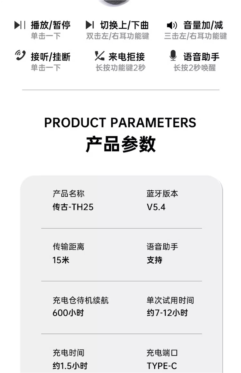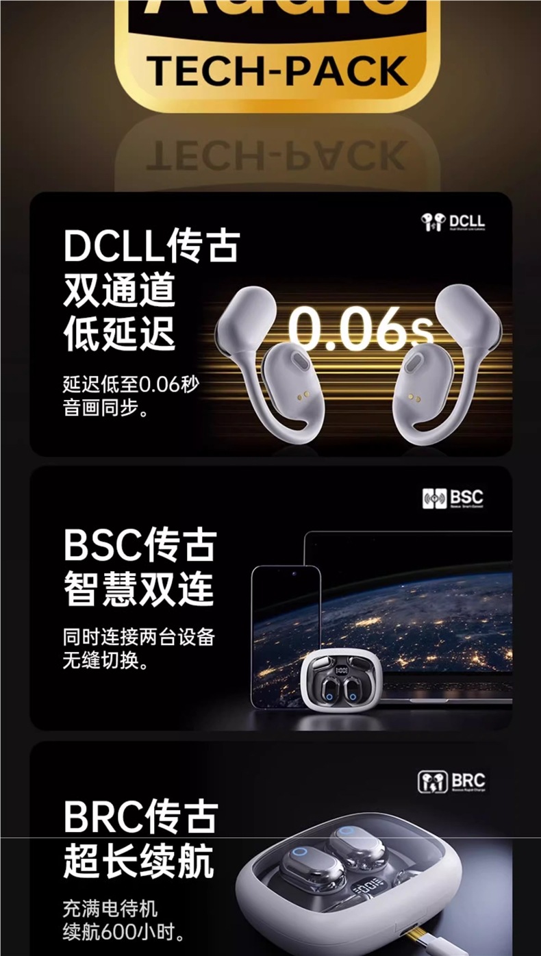 ノイズリダクション機能、重低音ステレオサウンド、音声コントロール、通話機能、骨伝導、センサーレス装着、独立マイク、超長バッテリー寿命、eスポーツ低遅延対応