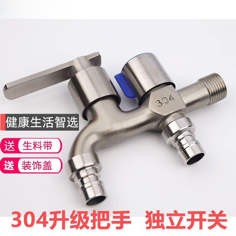 304不锈钢水龙头洗衣机专用一进二出双用水龙头4分家用自来水开关