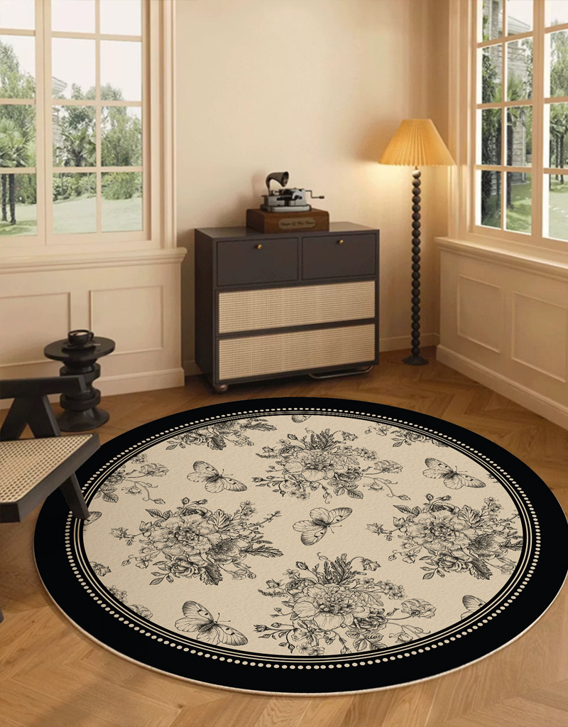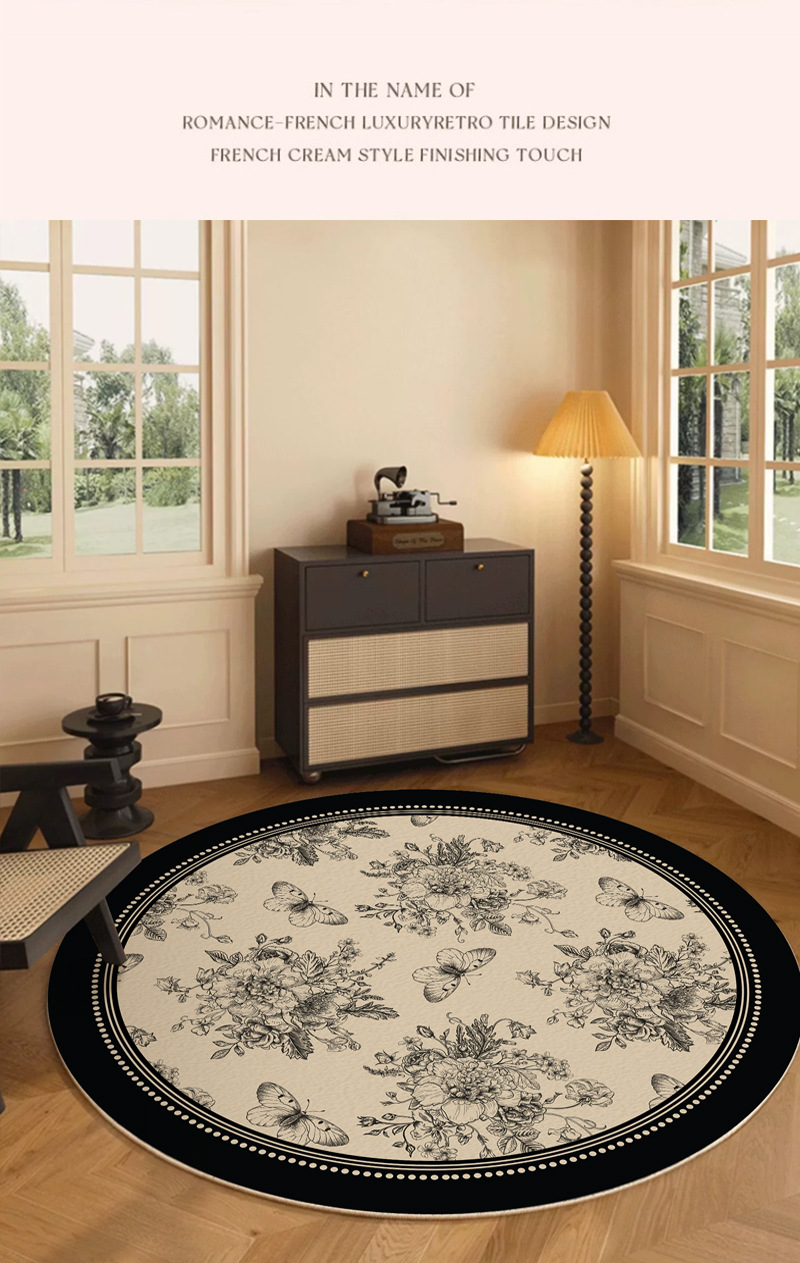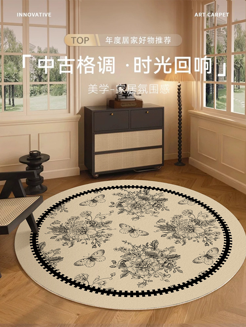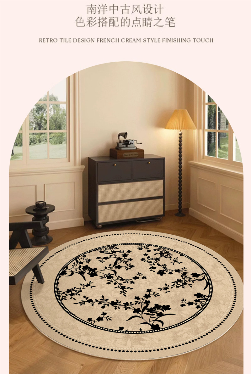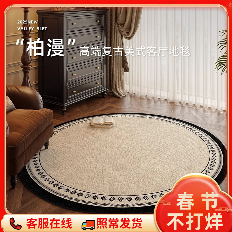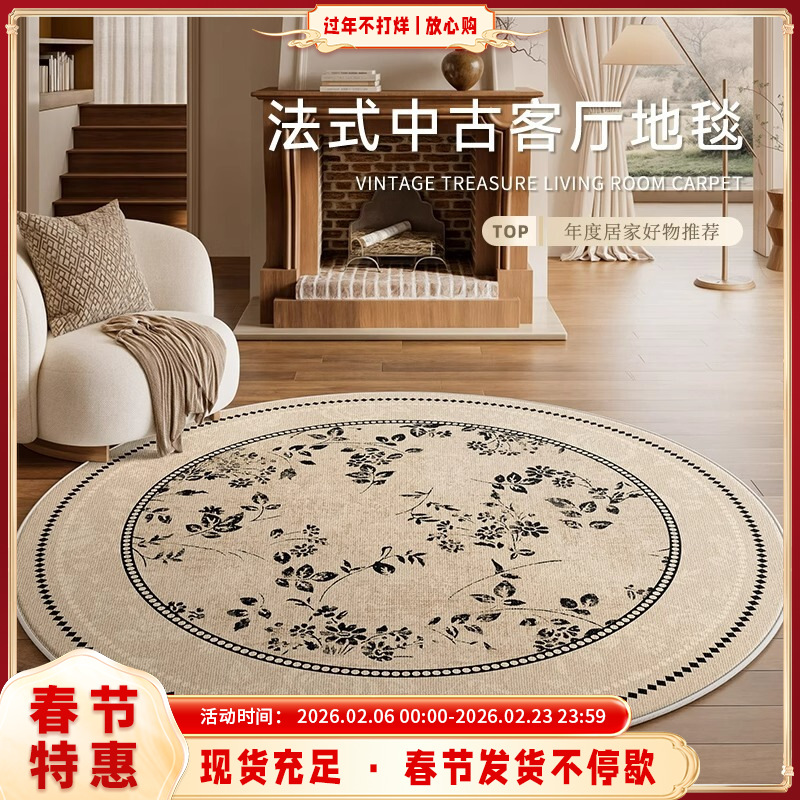 ラウンドカーペットリビングルームアンティークスタイルフレンチレトロベッドルームベッドサイドブランケットクロークフロアマットハイエンド2025新しいスタイル
