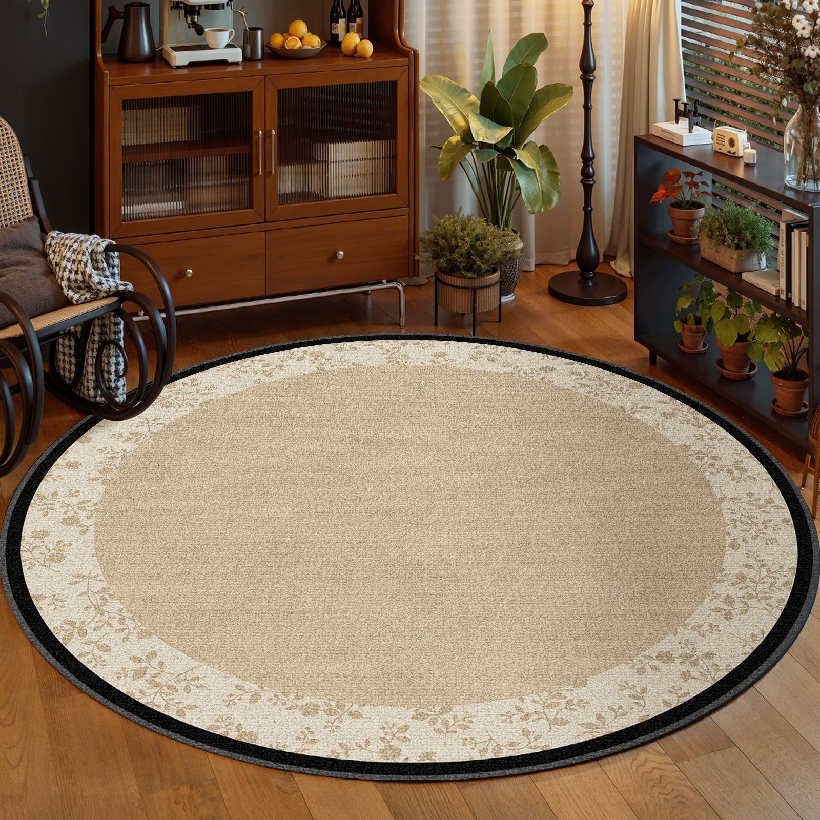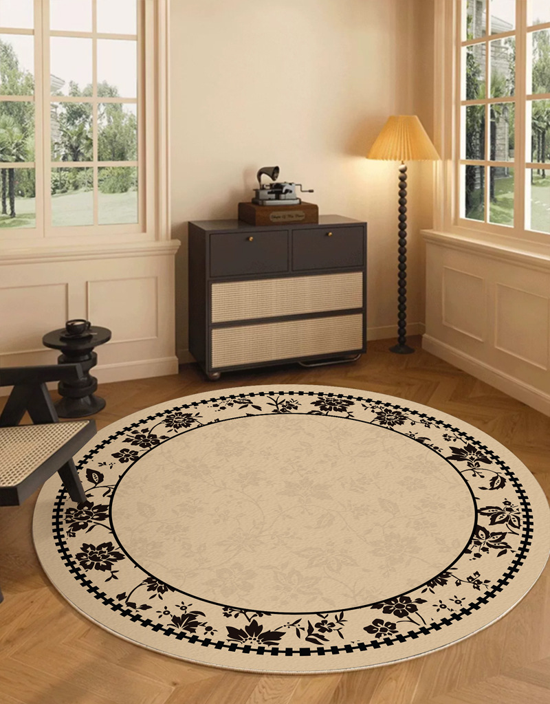 ラウンドカーペットフレンチミッドセンチュリースタイルリビングルームカーペット寝室ベッドサイド書斎ロッキングチェアフロアマットレトロノンスリップフロアマット
