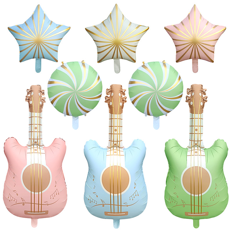 マットギターアルミフィルムバルーン音符楽器の形音楽祭野外テーマパーティーレイアウト装飾バルーン