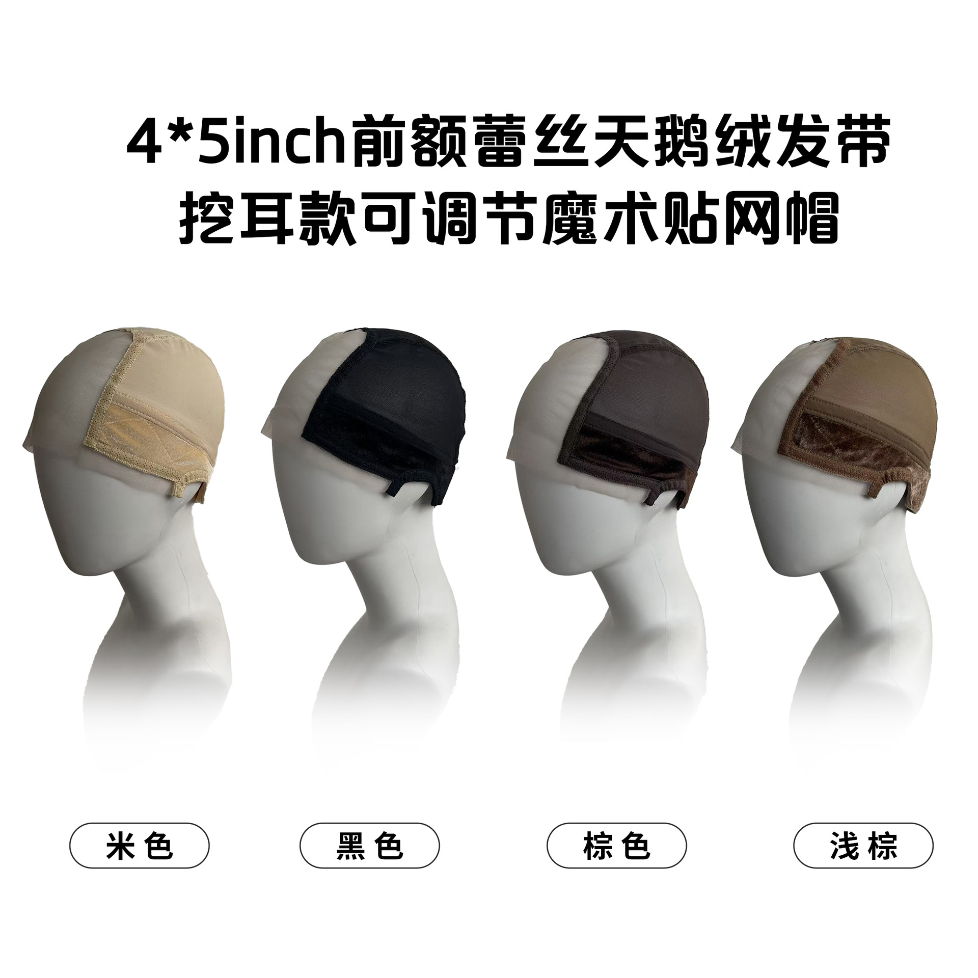 外贸蕾丝天鹅绒假发挖耳发带网帽透气魔术贴弹力头套Lace wig cap