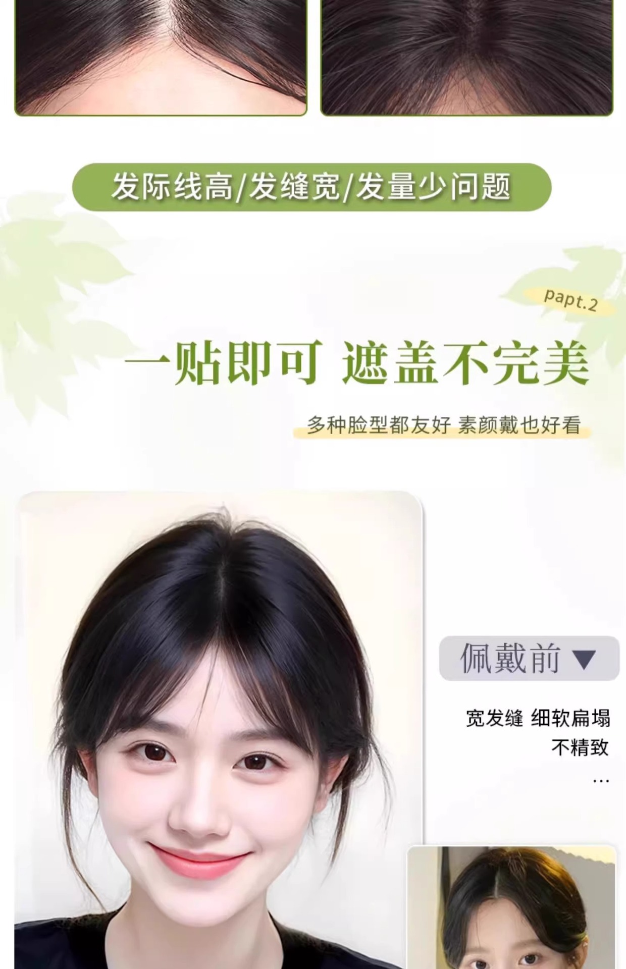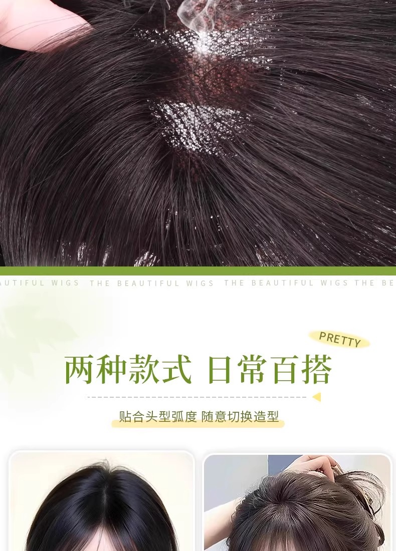 假发八字刘海假发片女头顶补发增发量蓬松遮白发高颅顶仿真发发片