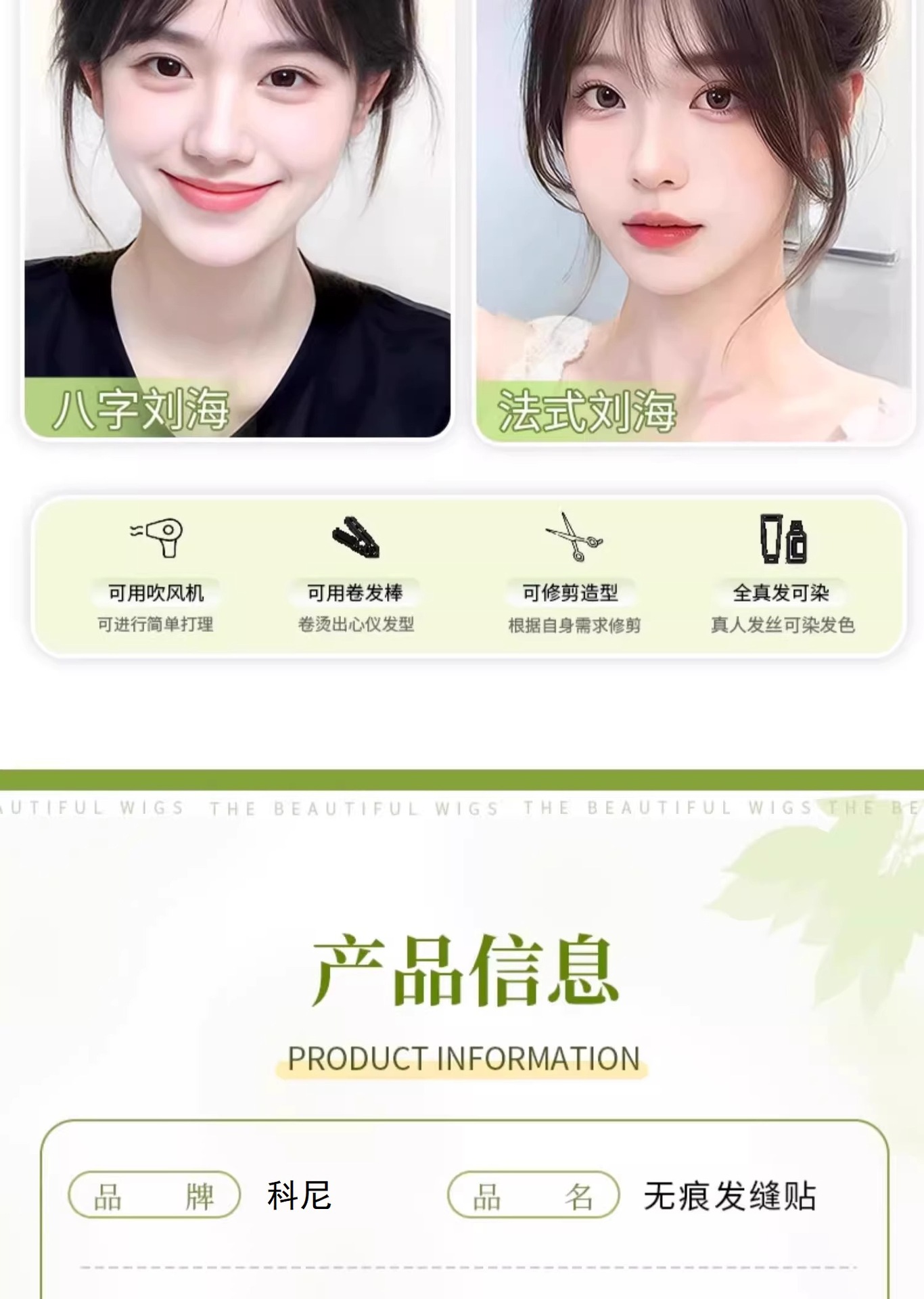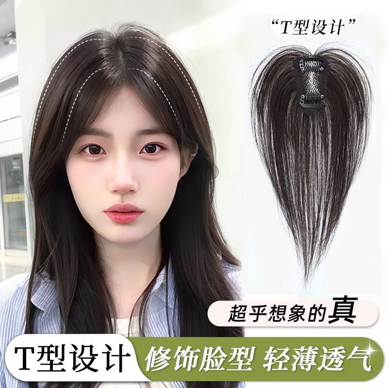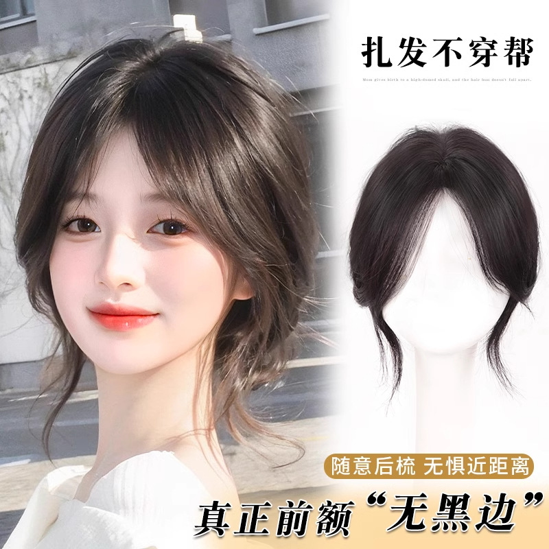 刘海假发片女头顶增发蓬松自然前额真发日系斜刘海无痕轻薄假发片