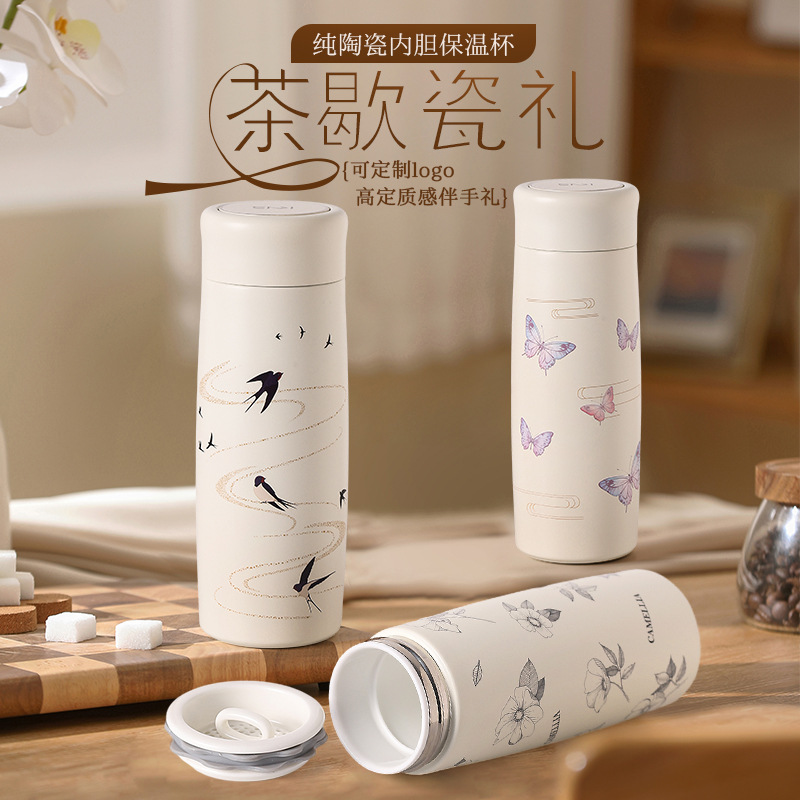 保温カップ セラミック内胆 茶葉入れ 男女兼用 ポータブル 大容量 水筒 ギフト レトロ シンプル ヴィンテージ風