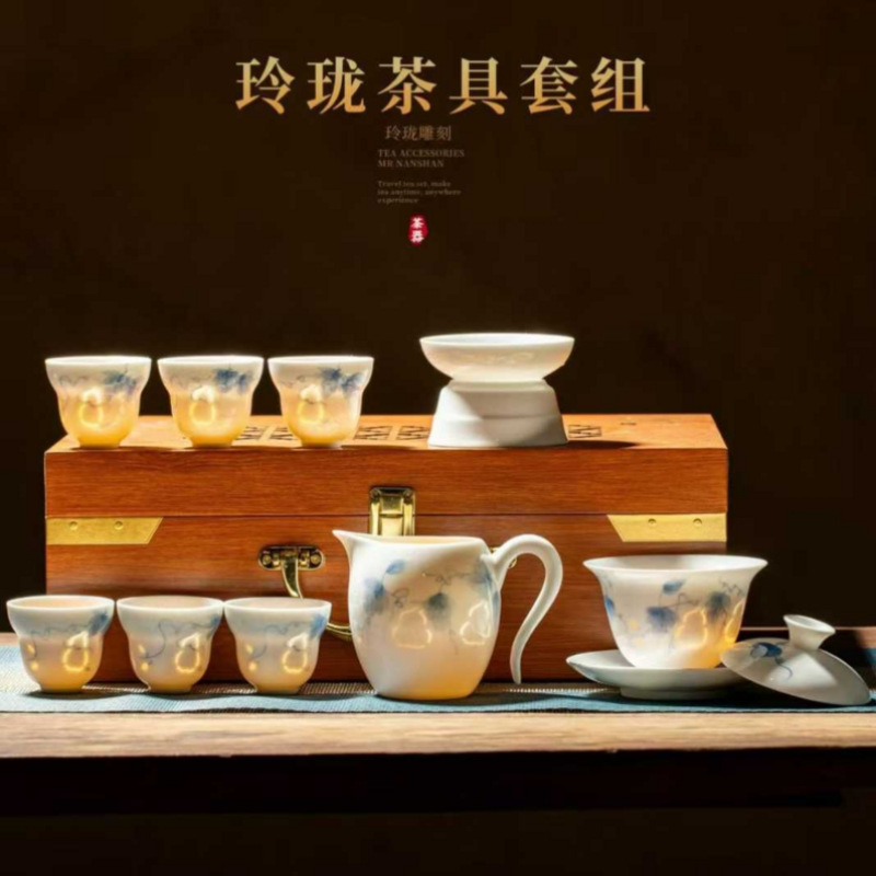 葫芦玲珑瓷一壶八杯茶具套装景德镇玲珑茶具10头手绘系列批发