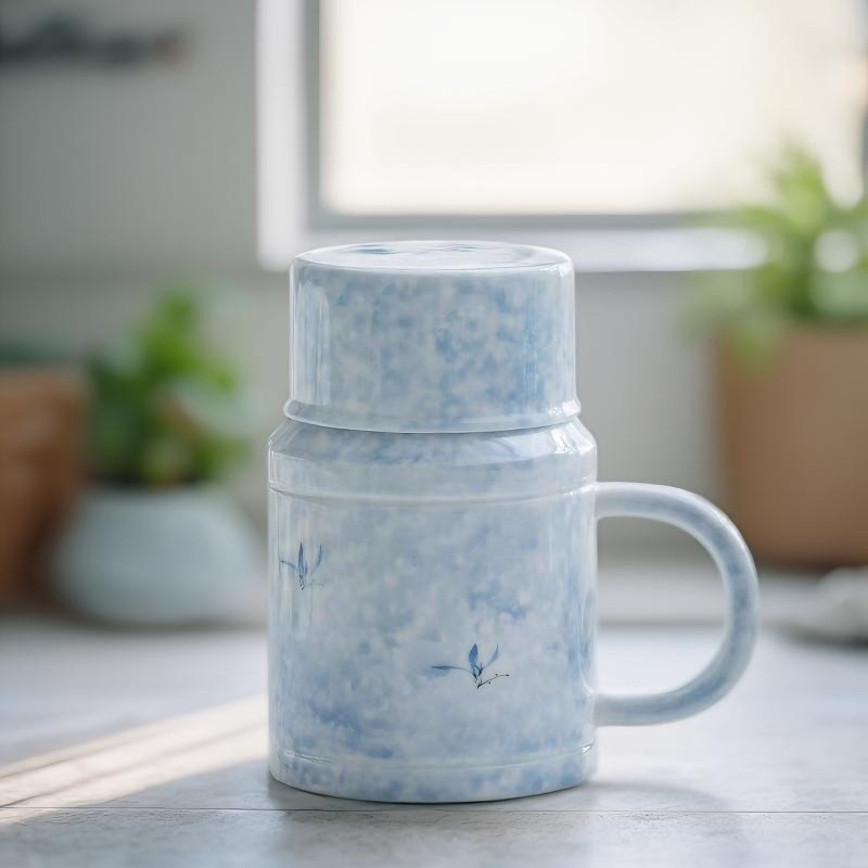 景徳鎮陶磁器青花茶水分離事務カップ泡カップ蓋付き活動銀行ビジネスプレゼントカップ