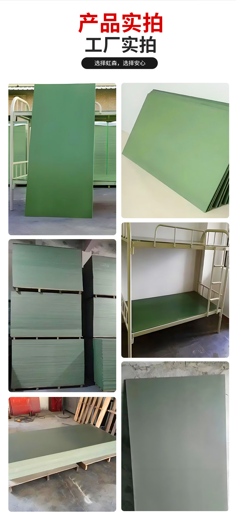 スポットアーミーグリーン従業員寮学校高密度強力で耐久性のある固体耐火性、防湿性、防虫性PVCベッドボード